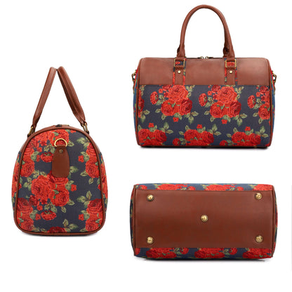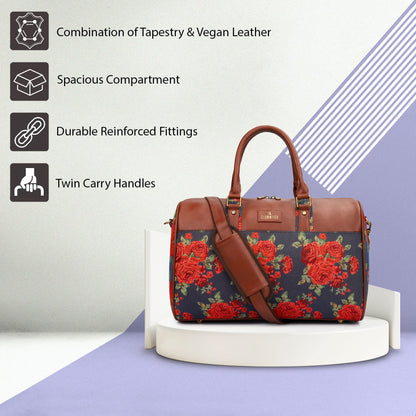 The Ambretta Series 21 litres Tapestry Travel Duffle Bag Weekender Bag (Navy Blue)