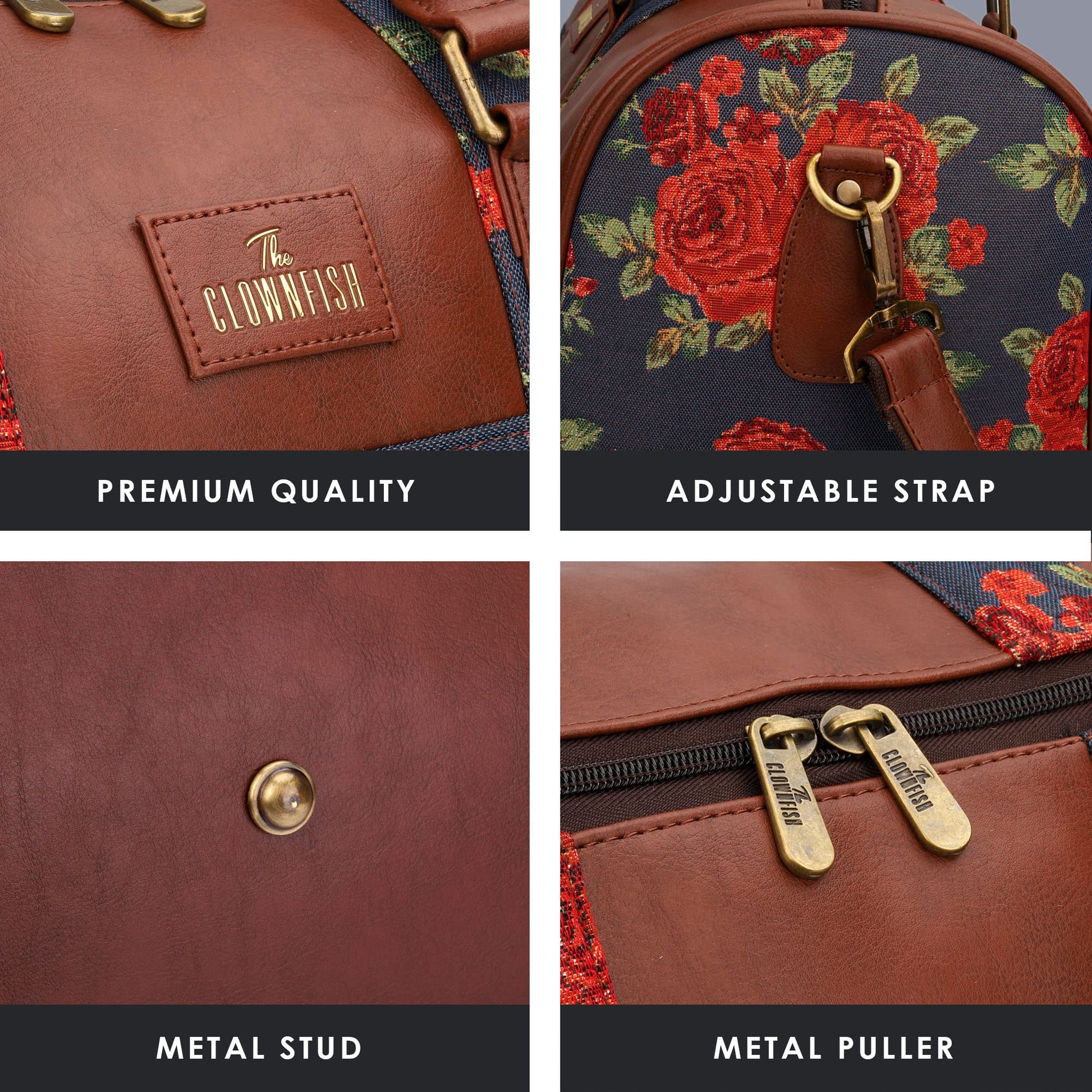 • Premium Quality Materials: Crafted from a sophisticated blend of high-quality tapestry and faux leather, this duffel bag not only looks stylish but is built to last. The soft polyester inner lining adds an extra touch of luxury.