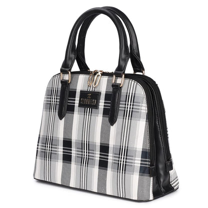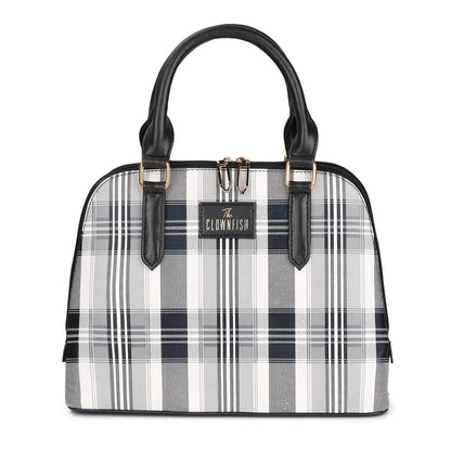 The Clownfish Andrea Handbag for Women Office Bag Ladies Shoulder Bag Tote for Women -Checks Design (Black)