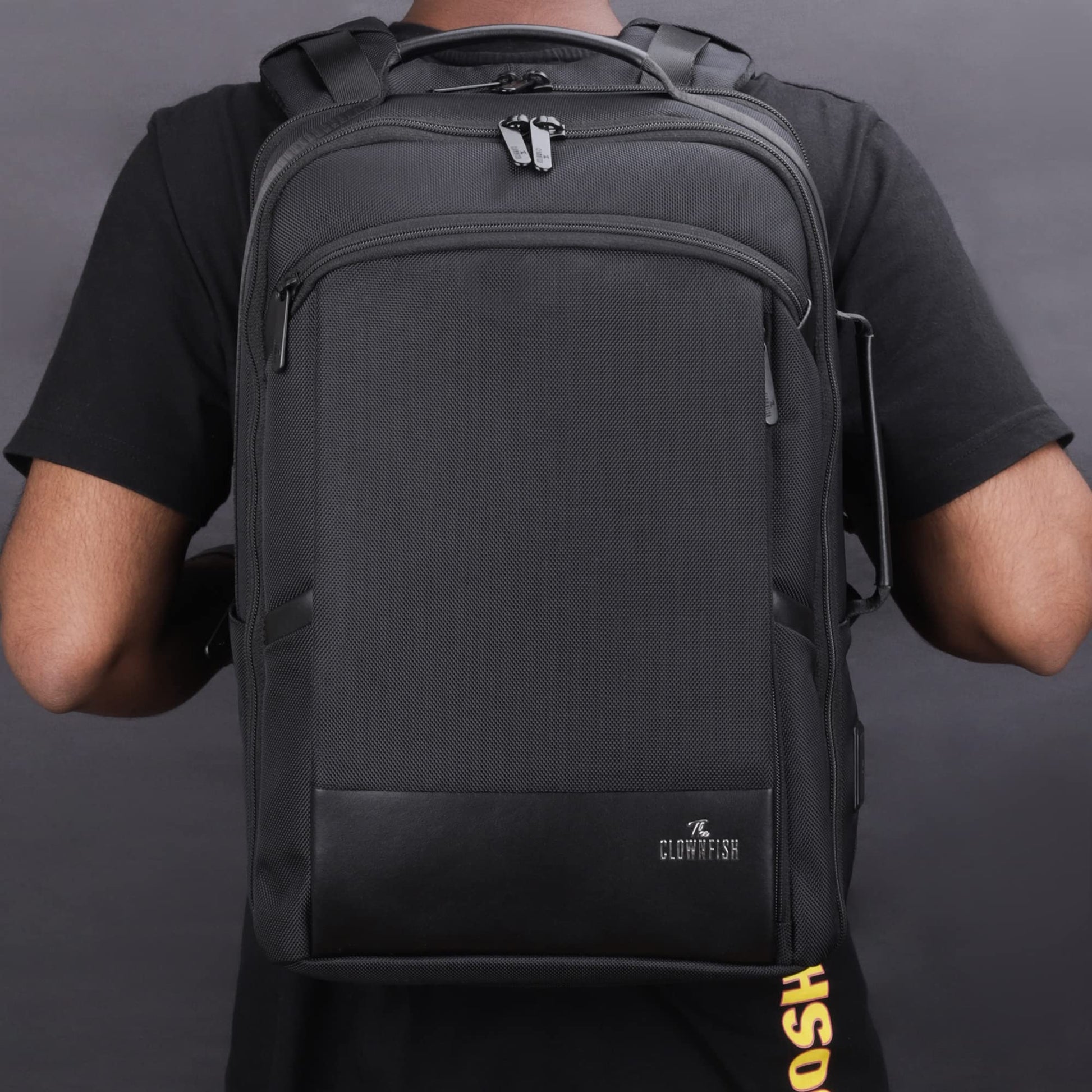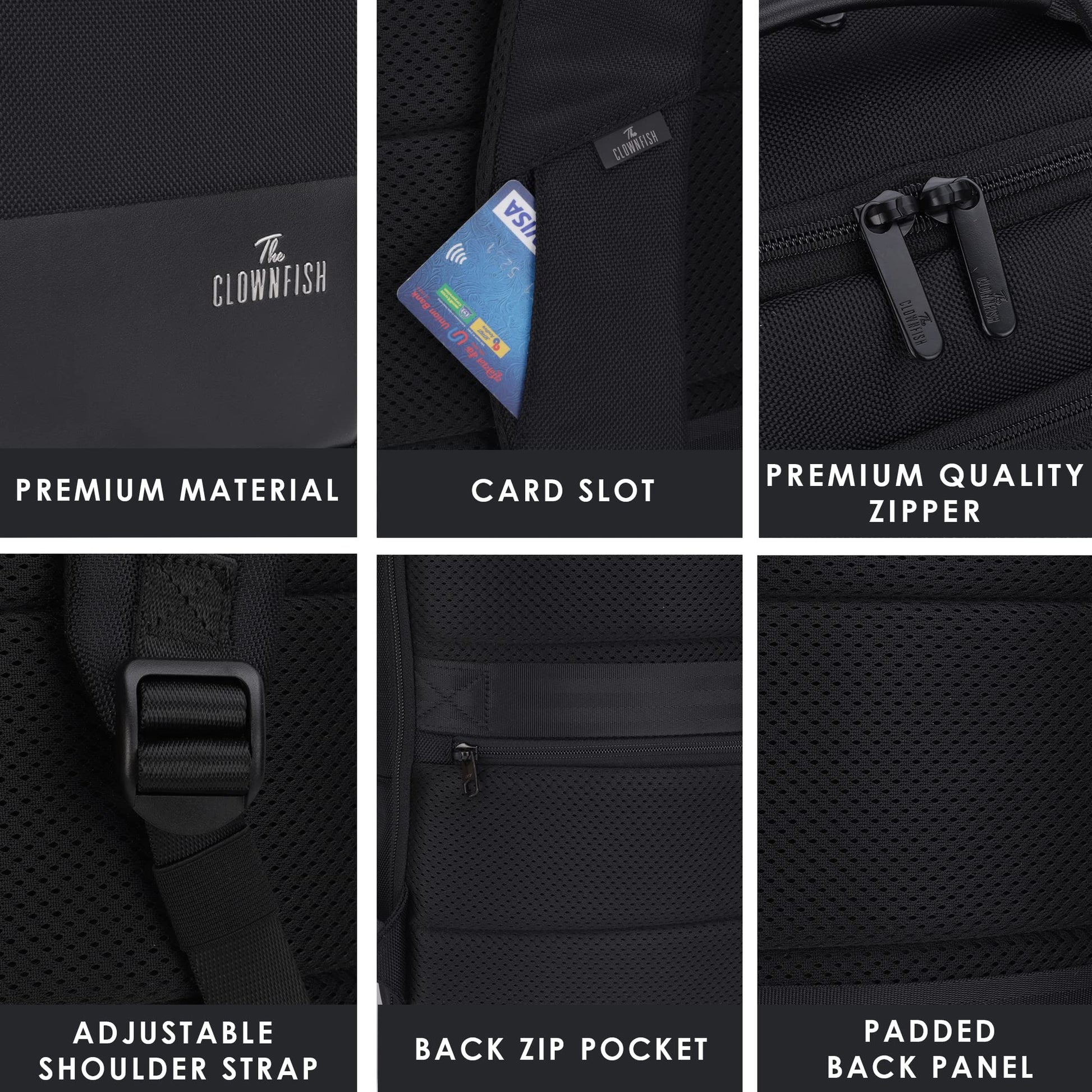 THE CLOWNFISH BANGE 21 Litres Unisex Polyester 2 in 1 Outdoor Travel Laptop Backpack fits 15.6 inch laptop (BLACK)