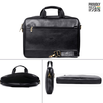 The Clownfish Biz Faux Leather 15.6 inch Laptop Messenger Bag Briefcase (Black)