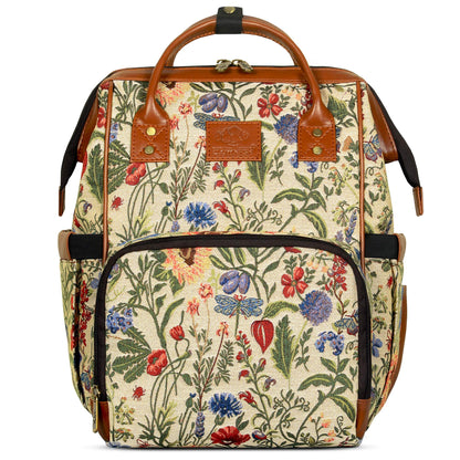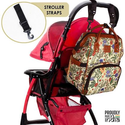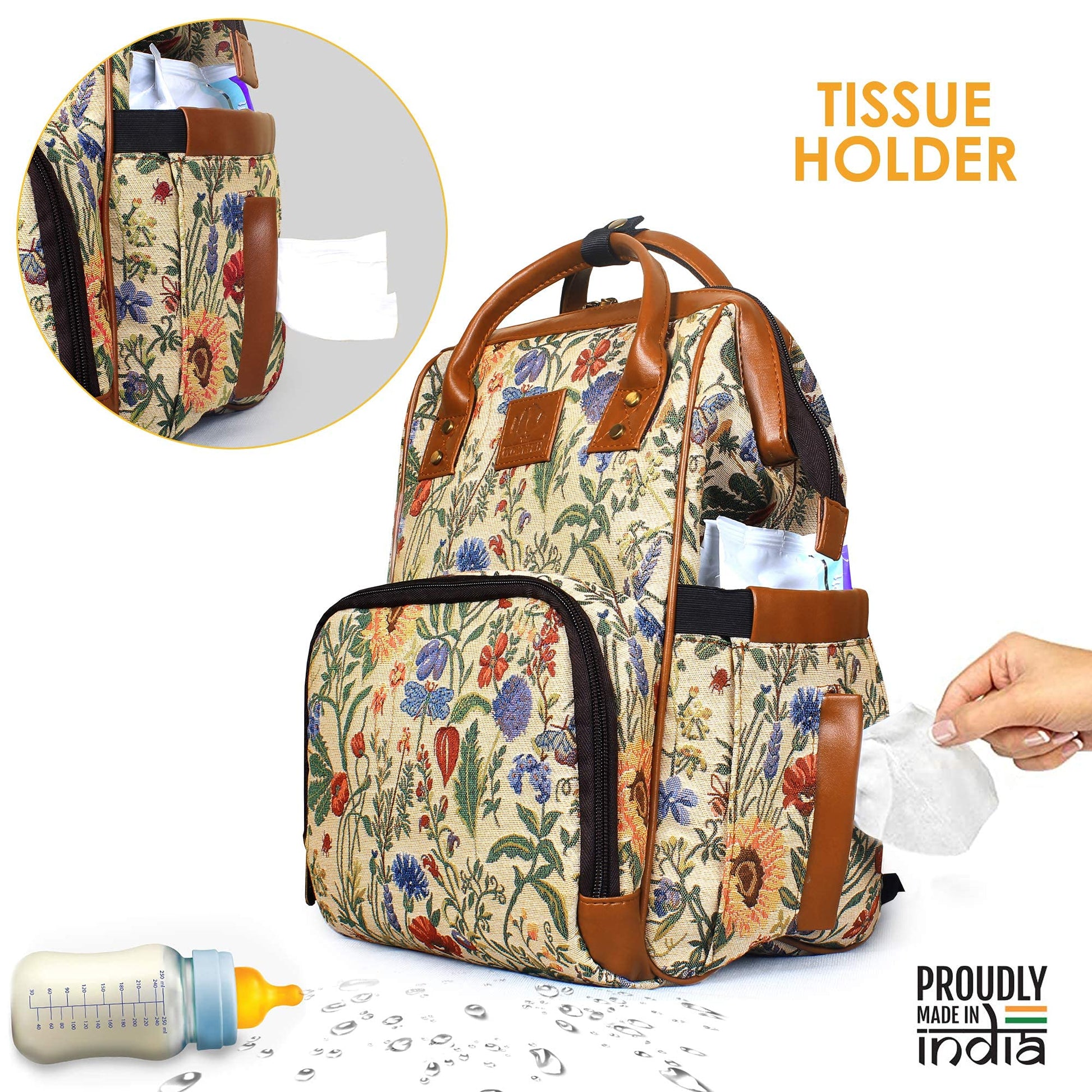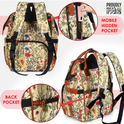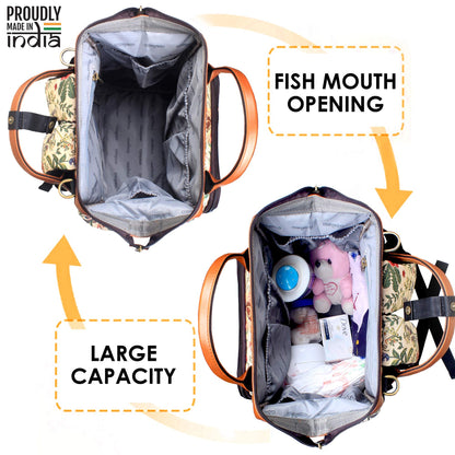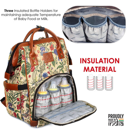 THE CLOWNFISH Blossom Multipurpose Diaper Bag/Backpack/Nappy Bag Cum Handbag with Bottle Organizer & Tissues Dispensing Pocket in Tapestry Fabric for Mothers (Yellow)