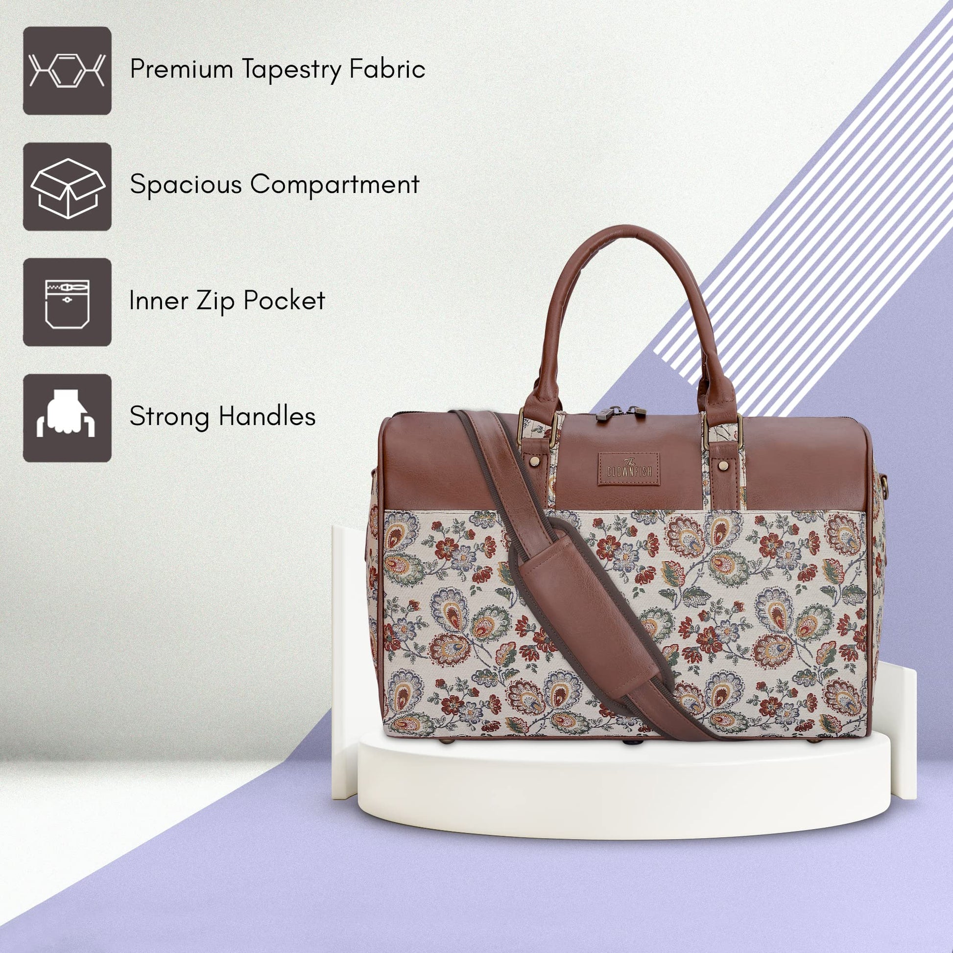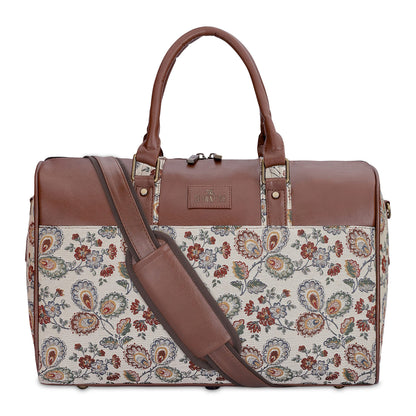 The Brooklyn 32 litres Tapestry with Faux Leather Unisex Travel Duffle Bag Weekender Bag (Skyblue-Floral)