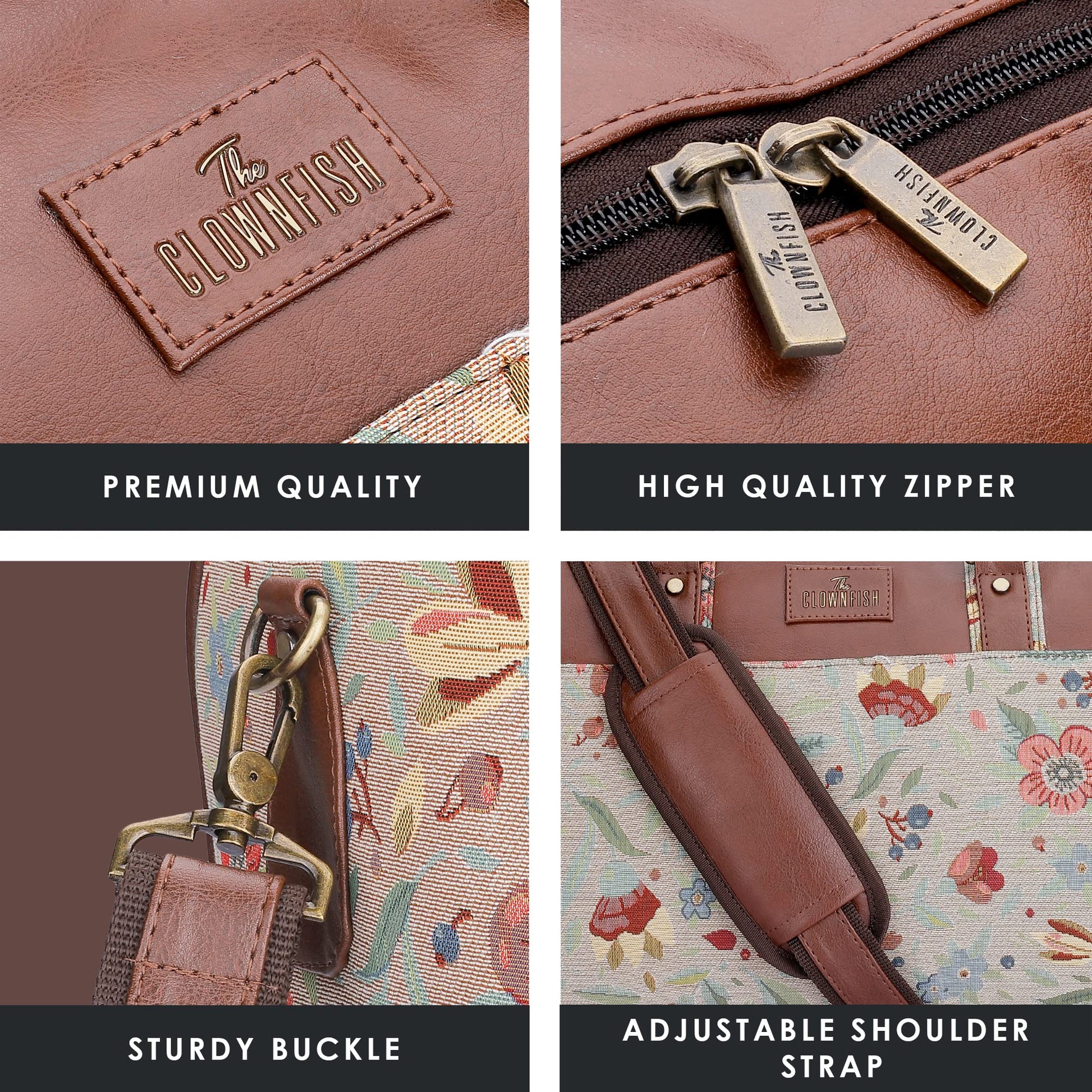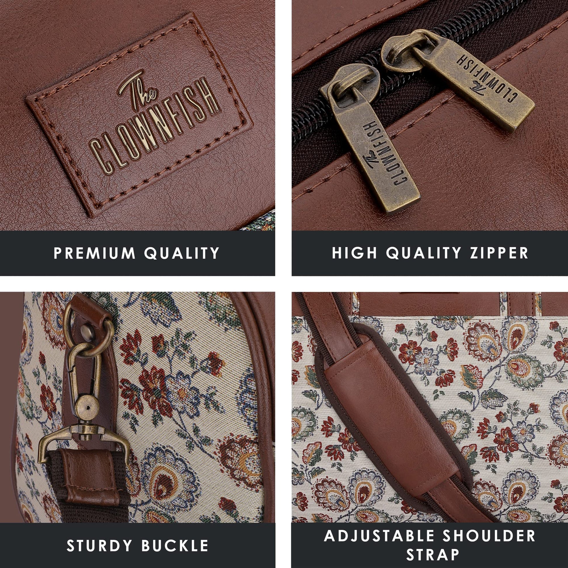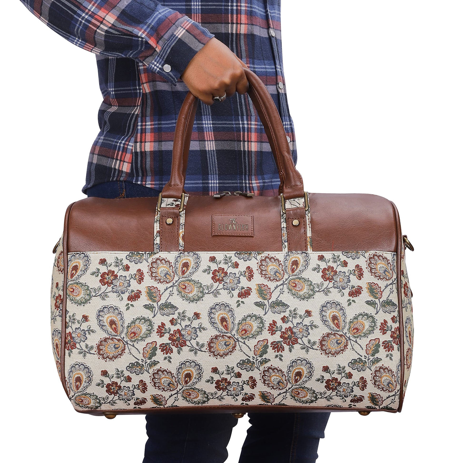 The Clownfish Brooklyn 32 Litres Tapestry with Faux Leather Unisex Travel Duffle Bag Weekender Bag