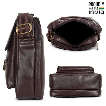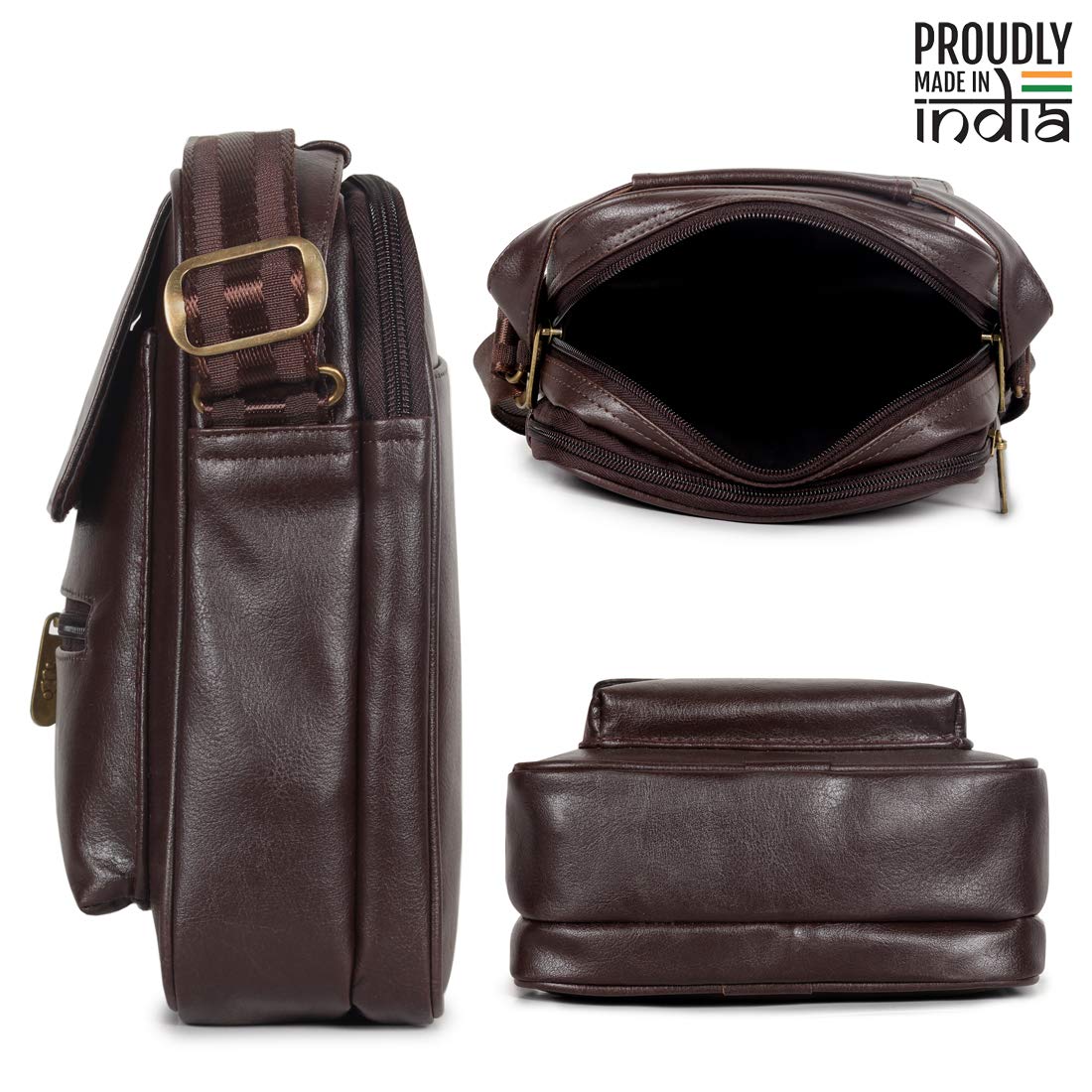 The Clownfish Cherish Faux Leather Unisex Crossbody Sling Bag Tablet Bag (Dark Brown)