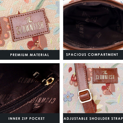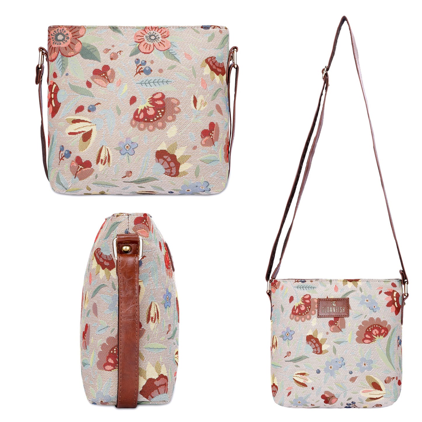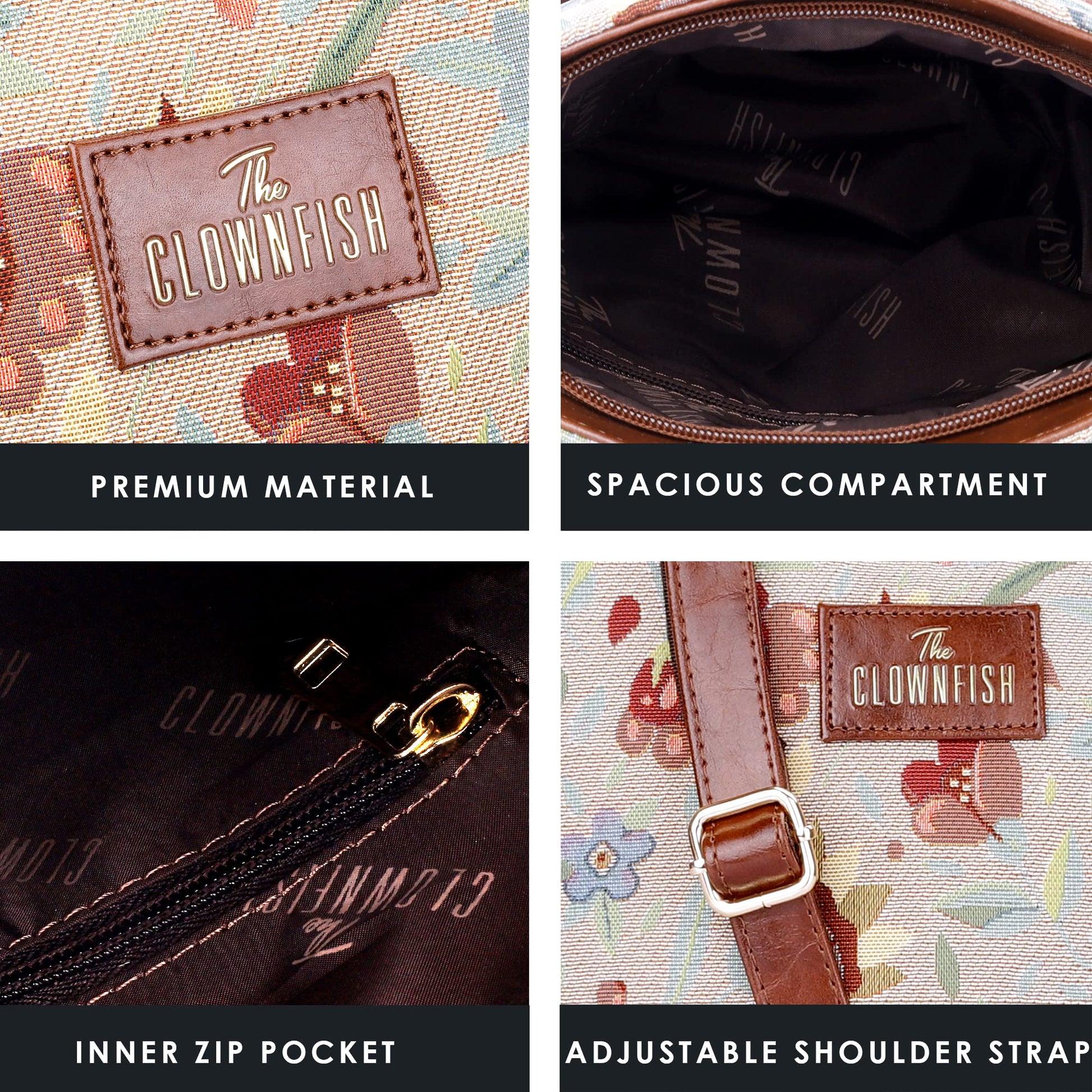THE CLOWNFISH Combo of Linda Series Sling for Women Crossbody Bag for College Girls Lorna Tapestry Fabric & Faux Leather Handbag Sling Bag for Women (Skyblue-Floral)