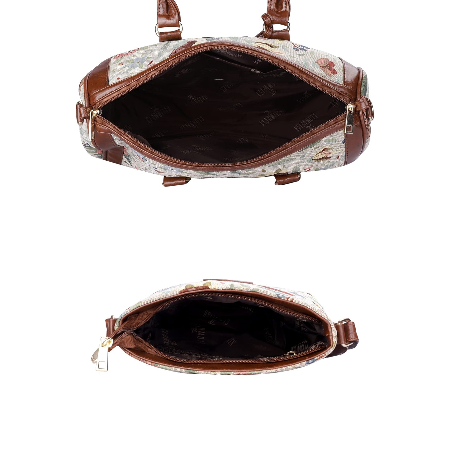 Crafted from a luxurious combination of faux leather and Lorna Tapestry fabric, this bag duo promises durability and style. The soft polyester inner lining provides a gentle touch, while robust reinforced fittings such as zippers, buckles, and hooks ensure longevity.