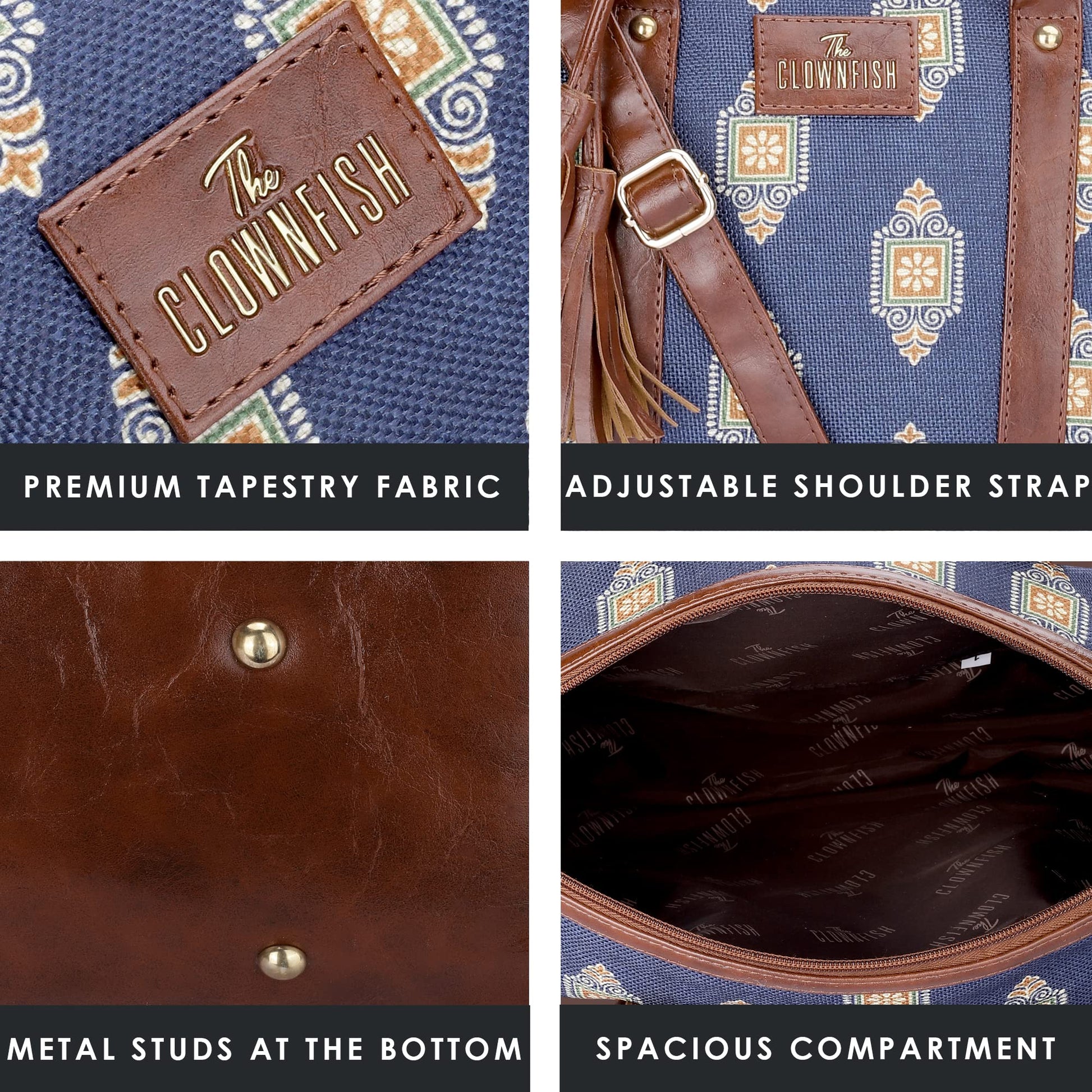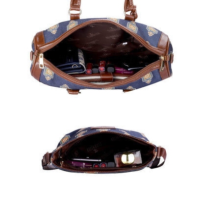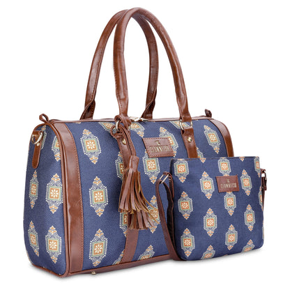 THE CLOWNFISH Combo Of Lorna Printed Handicraft Fabric & Faux Leather Handbag Sling Bag for Women & Aahna Printed Handicraft Fabric Crossbody Sling bag for Women (Dark Blue)