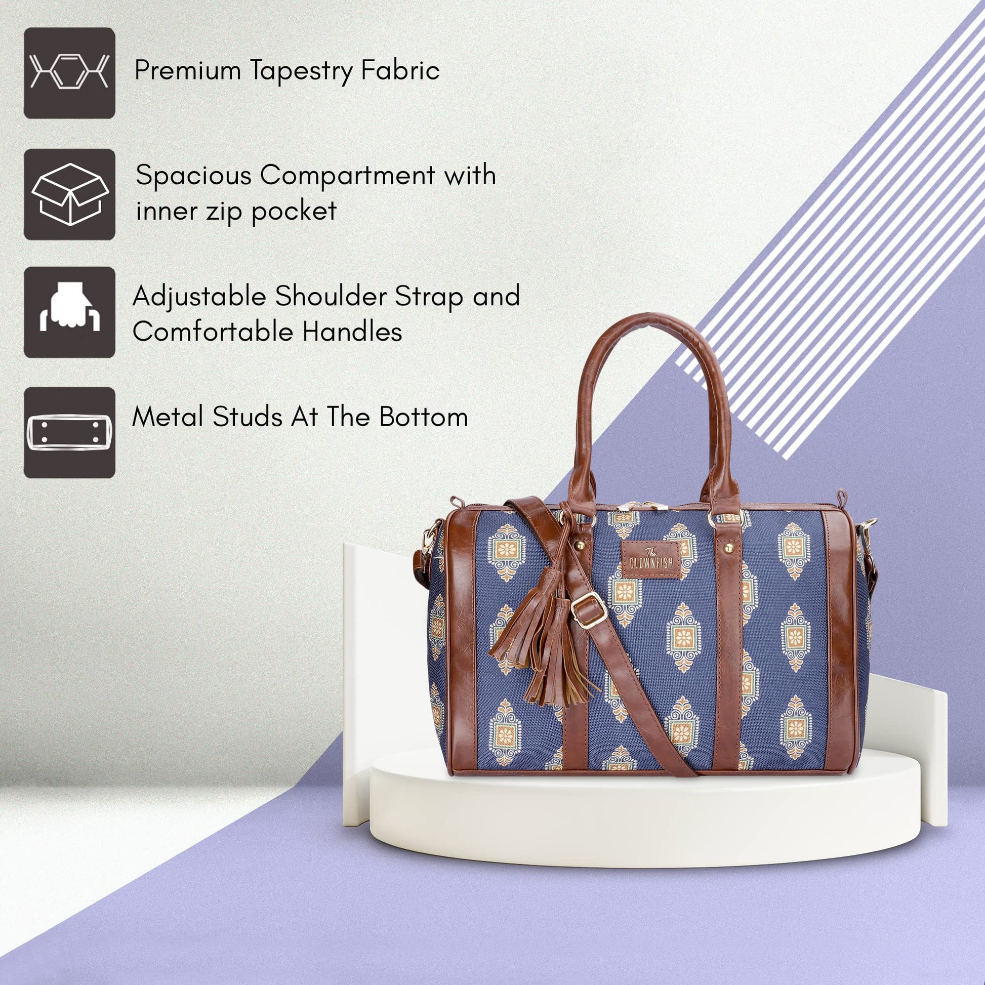 Crafted from a blend of high-quality Printed Handicraft Fabric and durable Faux Leather, these bags promise longevity and a rich texture. The soft polyester inner lining ensures comfort and protection for your belongings, while reinforced fittings such as metal zippers and buckles add a touch of luxury and resilience.