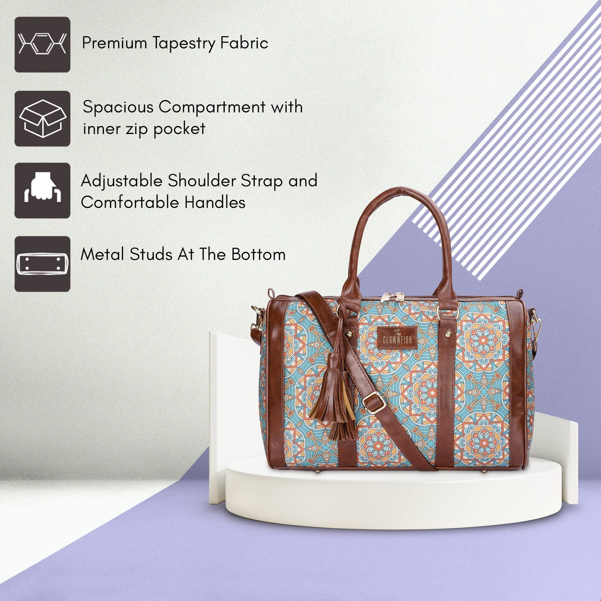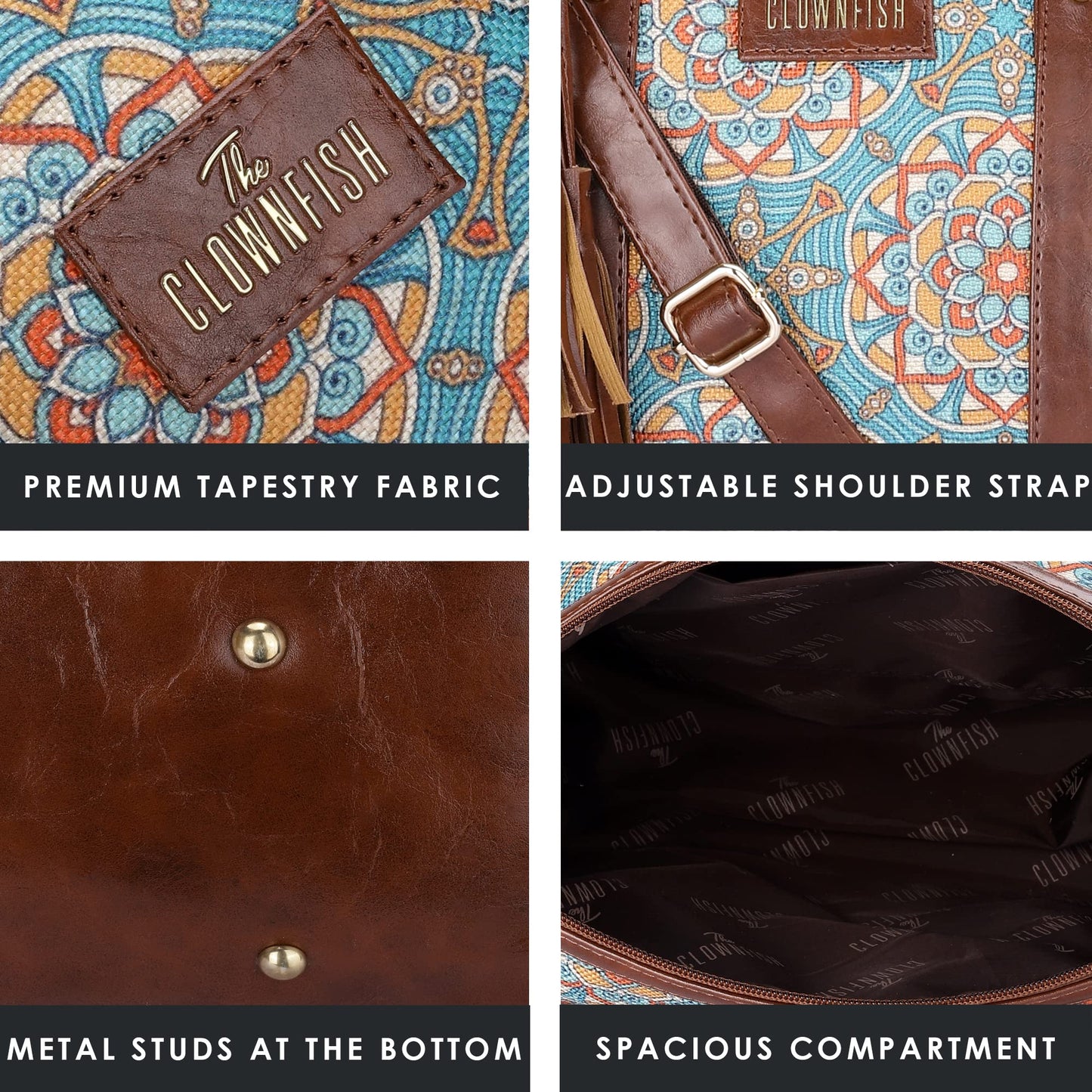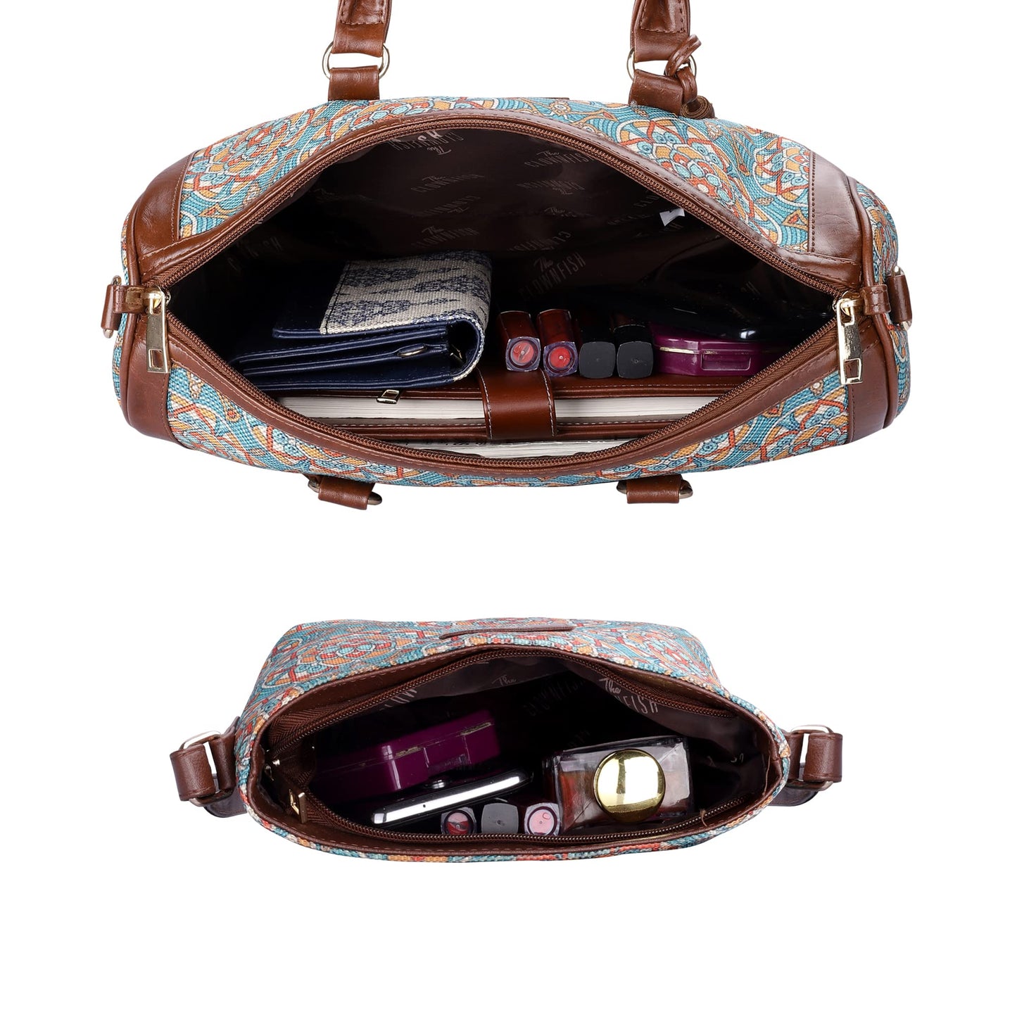 Introducing the ultimate accessory for the modern woman, the THE CLOWNFISH Combo featuring the Lorna Printed Handicraft Fabric & Faux Leather Handbag and the Aahna Printed Handicraft Fabric Crossbody Sling Bag. Designed with elegance and functionality in mind, this set is perfect for any occasion.