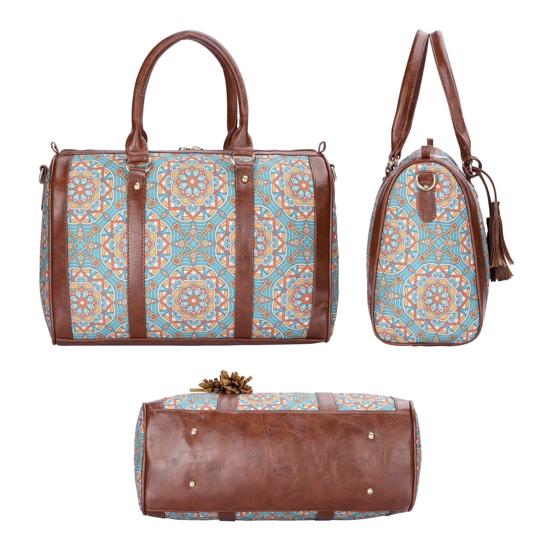 Crafted from a unique blend of high-quality Printed Handicraft Fabric and luxurious Faux Leather, this handbag combo ensures durability and style. The soft polyester lining gives a comfortable feel, making it a joy to use.