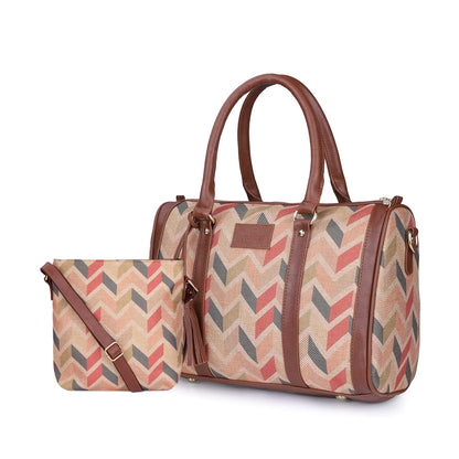 The Clownfish Combo of Lorna Printed Handicraft Fabric Handbag and Aahna Polyester Crossbody Sling bag for Women (Cream)