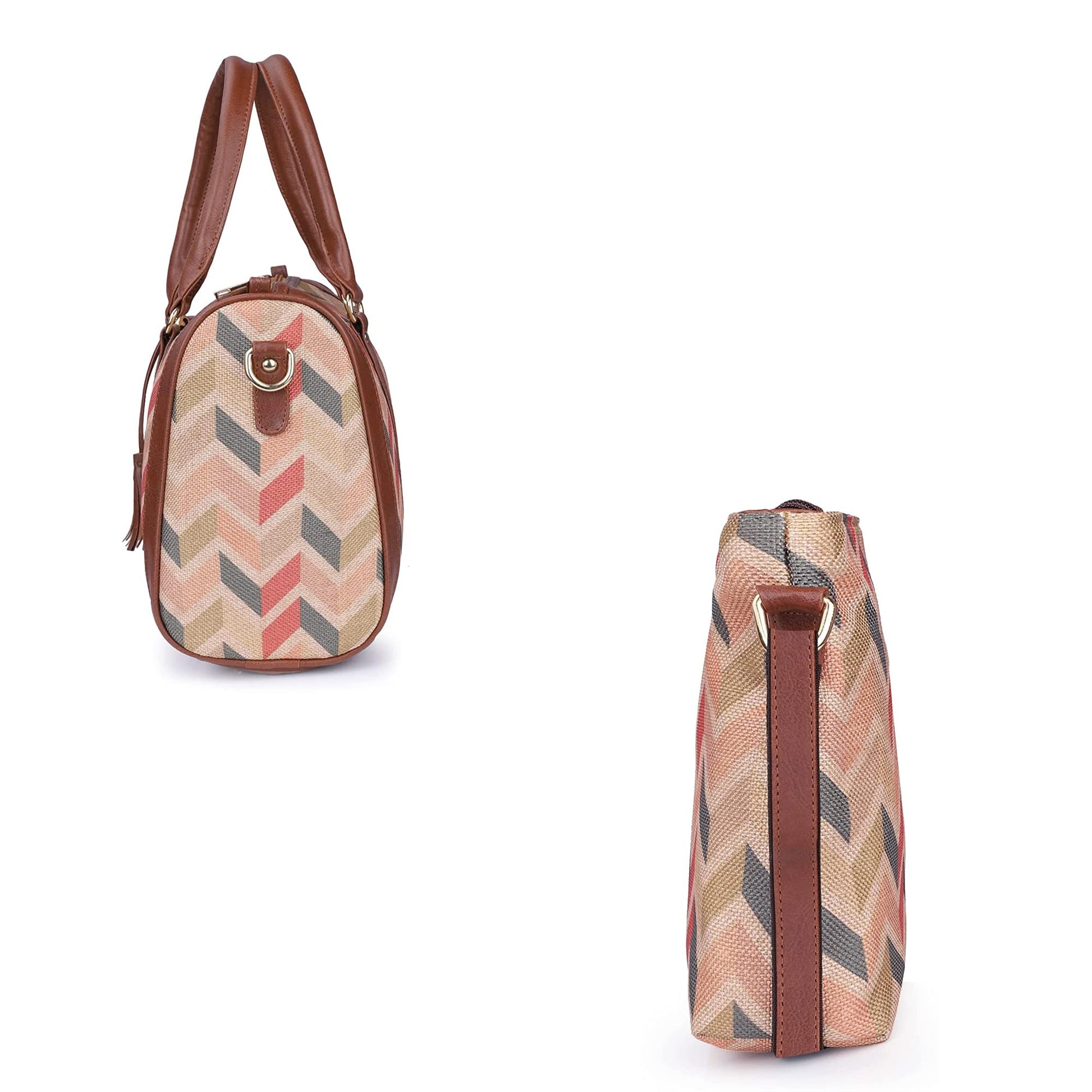 Crafted from a blend of premium Printed Handicraft Fabric and durable faux leather, this handbag and sling bag duo is built to last. The inner lining boasts a soft, premium quality polyester fabric, providing a luxurious feel. Enjoy the reliability of reinforced fittings including: