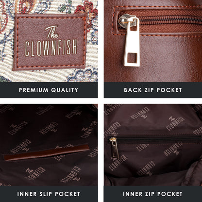 THE CLOWNFISH Combo, a perfect blend of style and functionality, designed for college, school, and casual travel. This exquisite backpack comes in a stunning Dark Brown-Floral combination, offering a chic appeal for every modern woman.