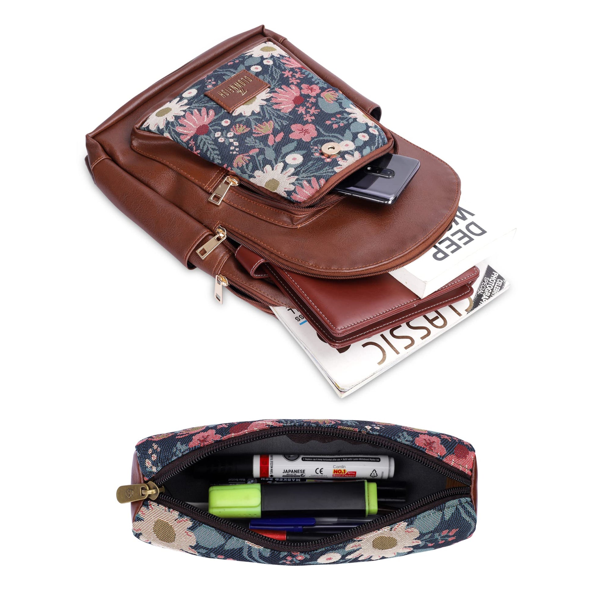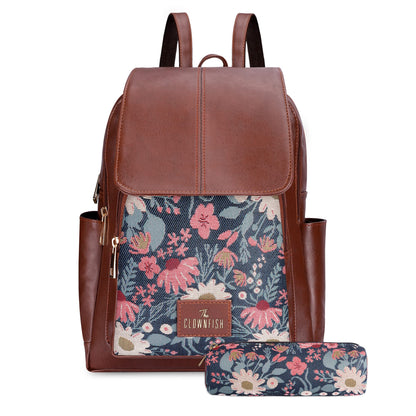 Elevate your everyday style and functionality with the THE CLOWNFISH Combo of Minerva Faux Leather & Tapestry Women's Backpack and Expert Series Pencil Pouch. Designed for college students, school girls, and the modern woman on the go, this combo is perfect for casual travel and daily use.