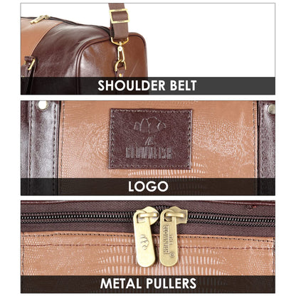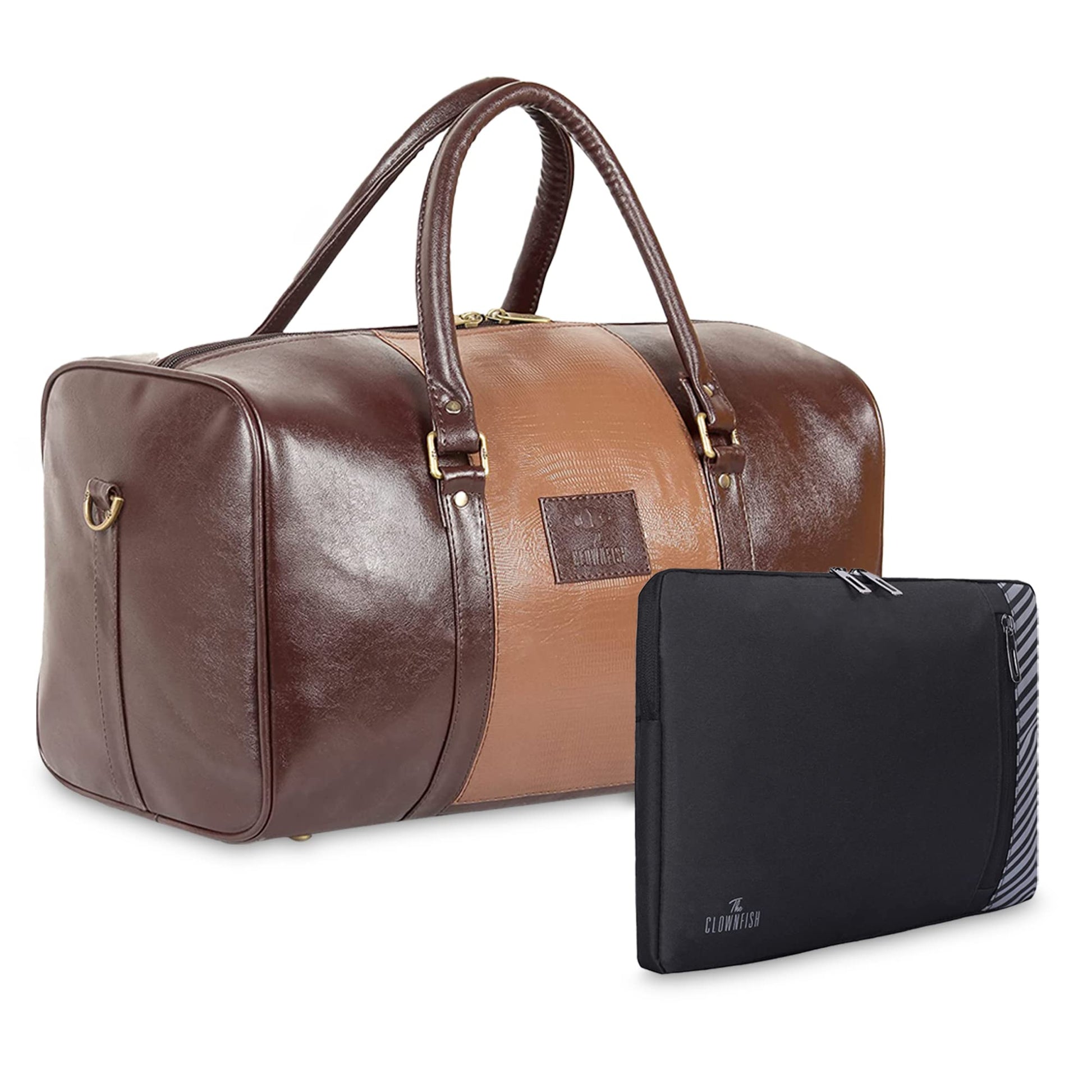 The Clownfish Combo of The Clownfish Ambiance Faux leather 18 Inch/20 litres Brown Duffle Bag & The Clownfish Algo Series Polyester Unisex 13 inch Laptop Sleeve Tablet Case (Assorted Colour)