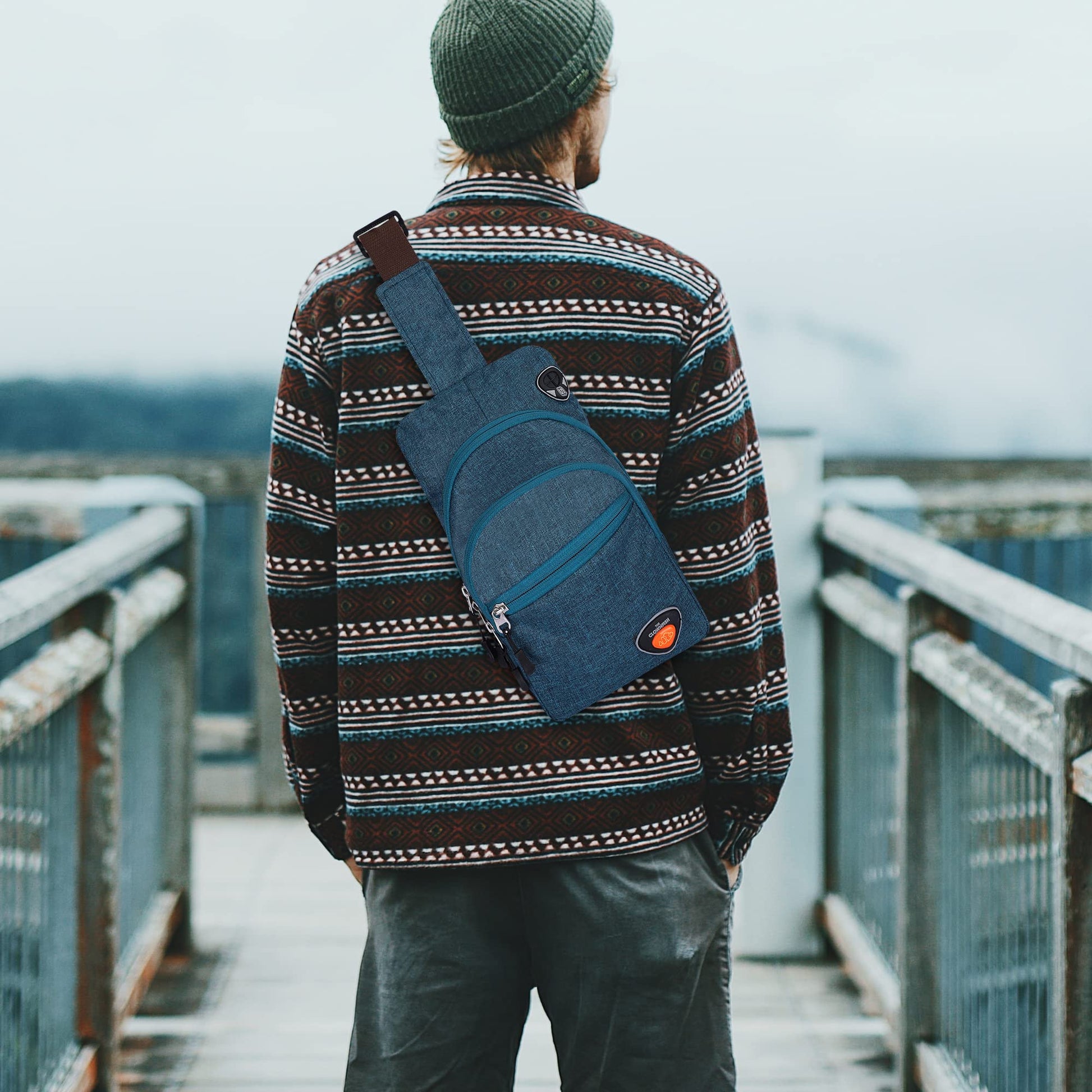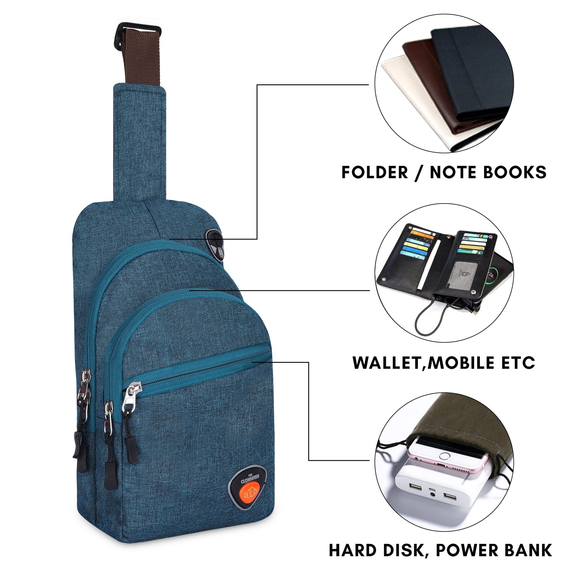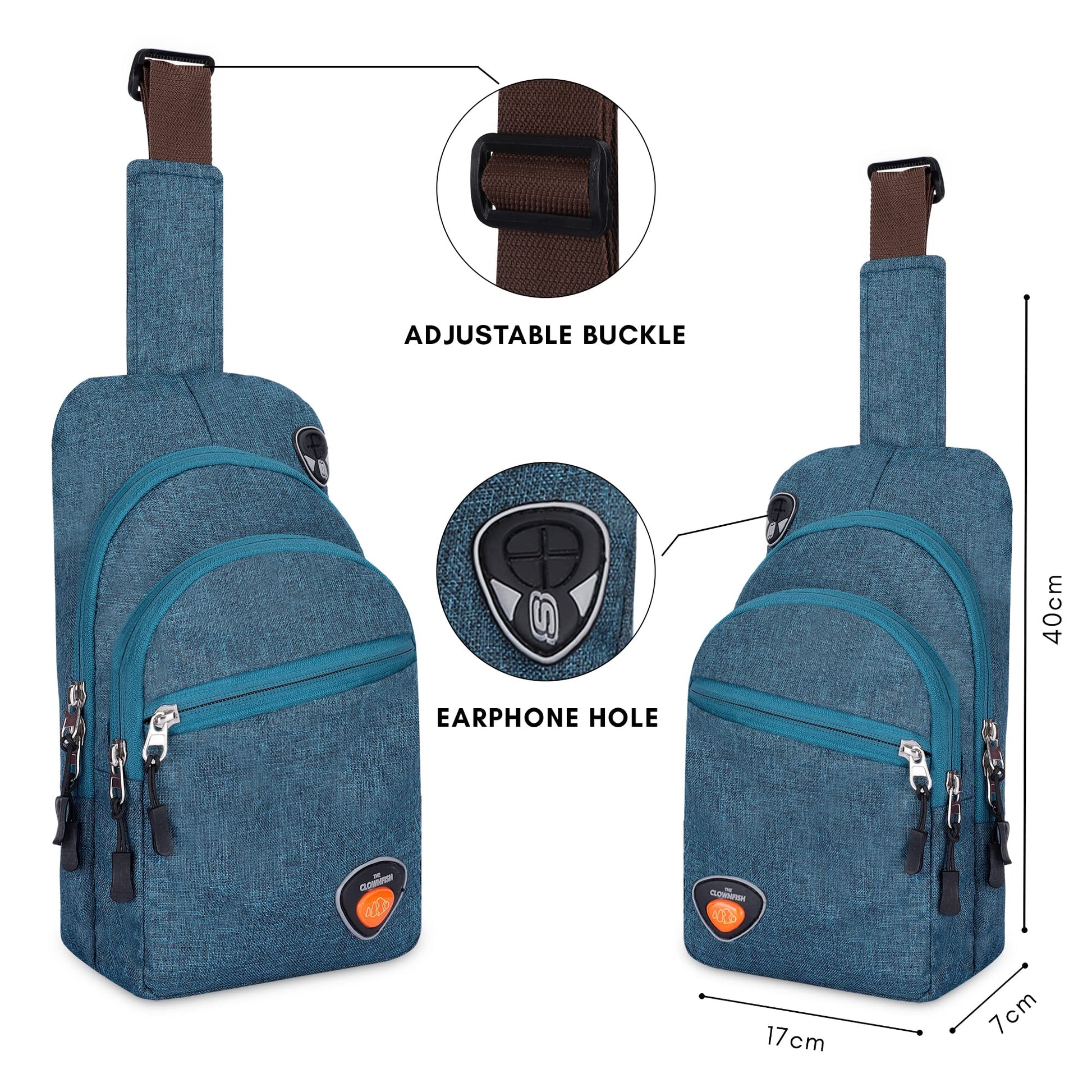 THE CLOWNFISH Cordette Unisex Polyester Casual Single Shoulder Sling Bag Crossbody Chest Bag with Earphone Hole (Dark Cyan)