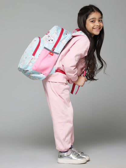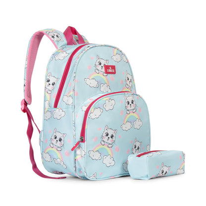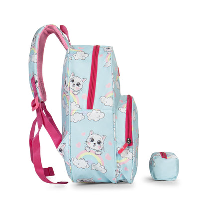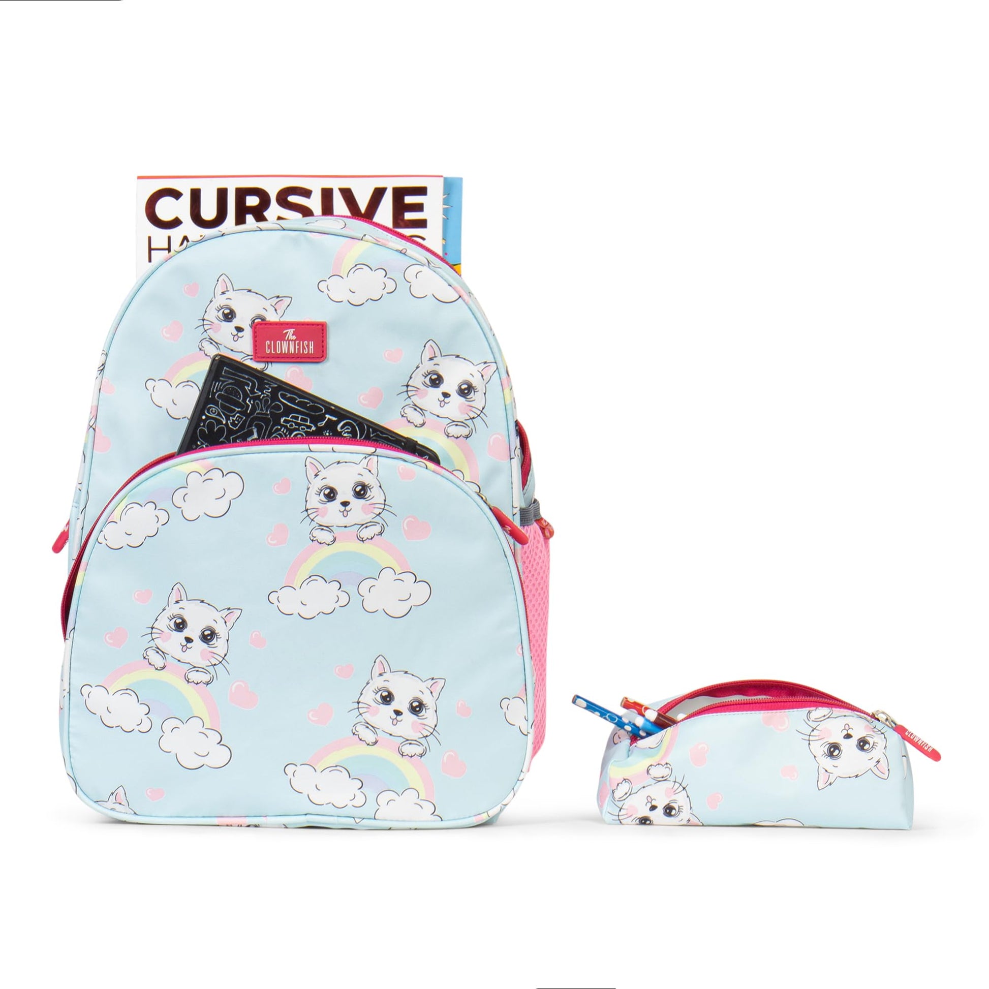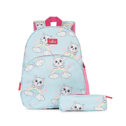 THE CLOWNFISH Cosmic Critters Series Printed Polyester 15 Litres Kids Backpack School Bag with Free Pencil Staionery Pouch Daypack Picnic Bag for Tiny Tots Of Age 5-7 Years (Blue - Kitty)
