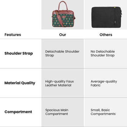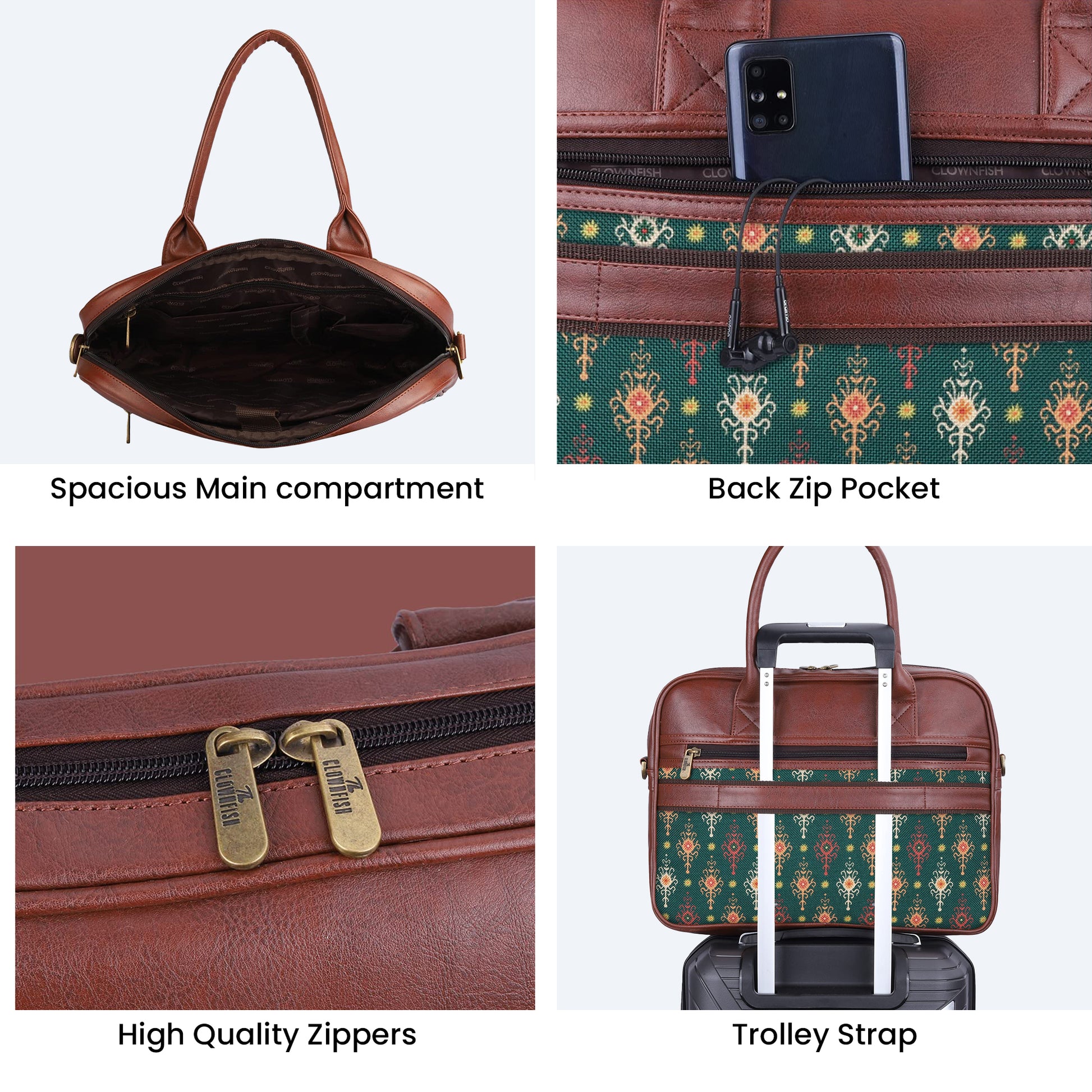 Elegant Laptop Bag - Water Resistant, Synthetic Leather | Adjustable Strap | Fits up to 15.6 inch | Brown