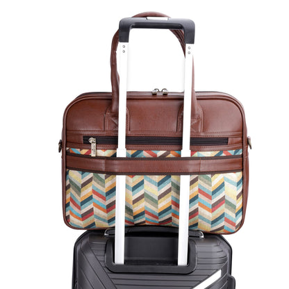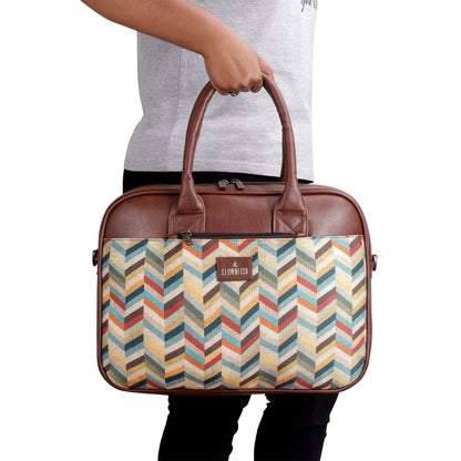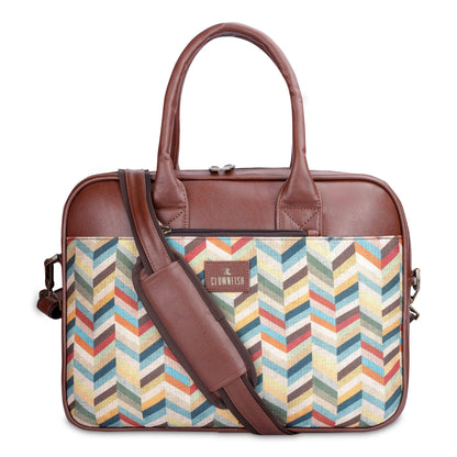 THE CLOWNFISH Deborah series 15.6 inch Laptop Bag For Women Printed Handicraft Fabric & Faux Leather Office Bag Briefcase Messenger Sling Handbag Business Bag (Multicolour-Rainbow)