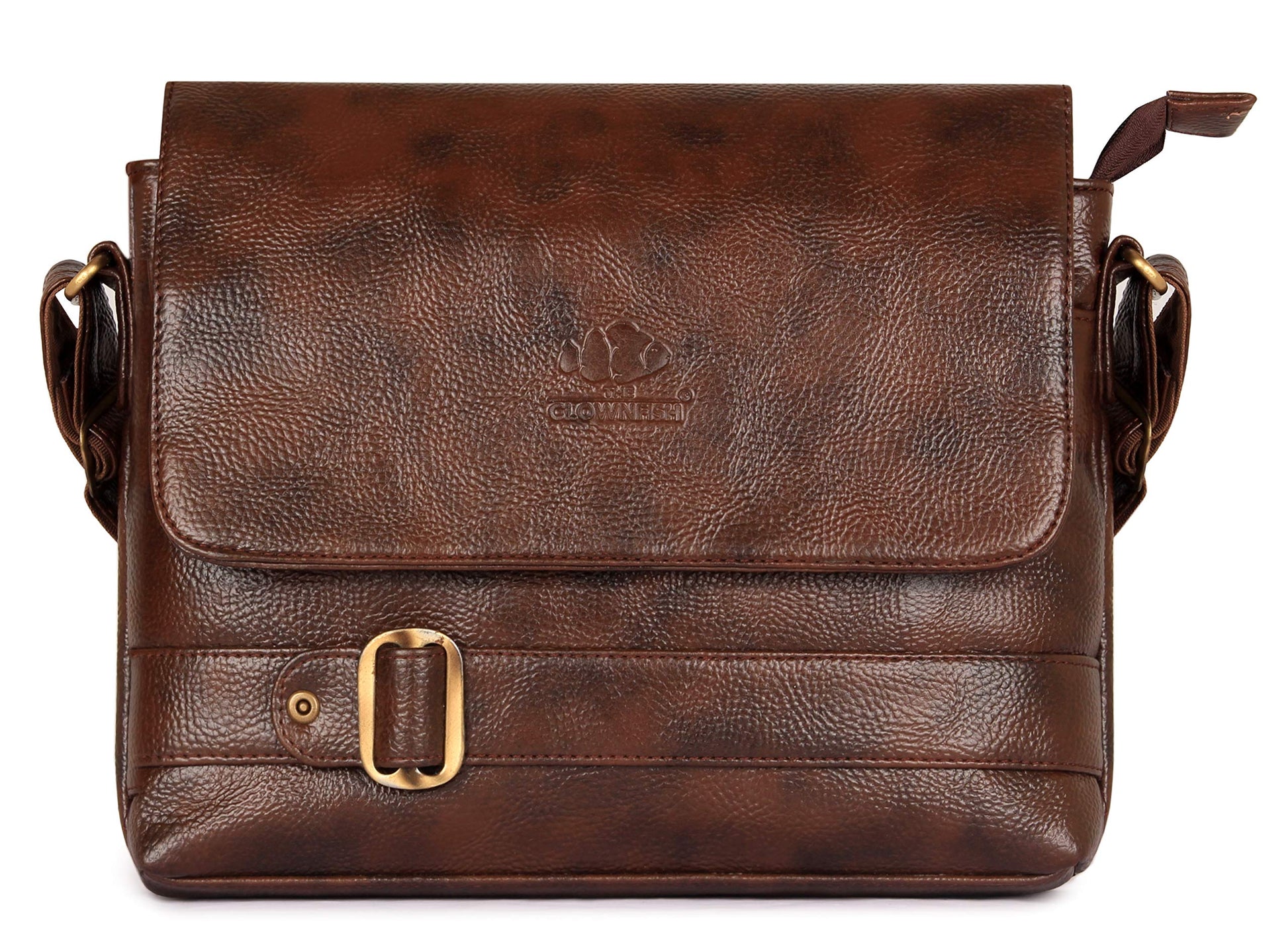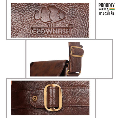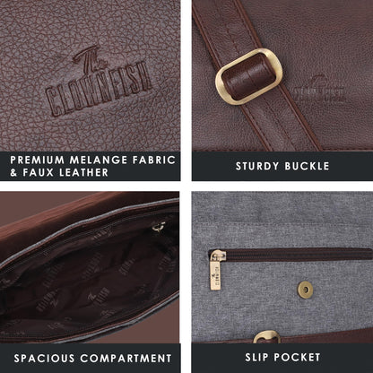 THE CLOWNFISH Eleganza Series Sling for Men & Women Melange Fabric & Faux leather Casual Unisex Single Shoulder Bag Crossbody Bag for College Girls Boys (Grey & Brown)