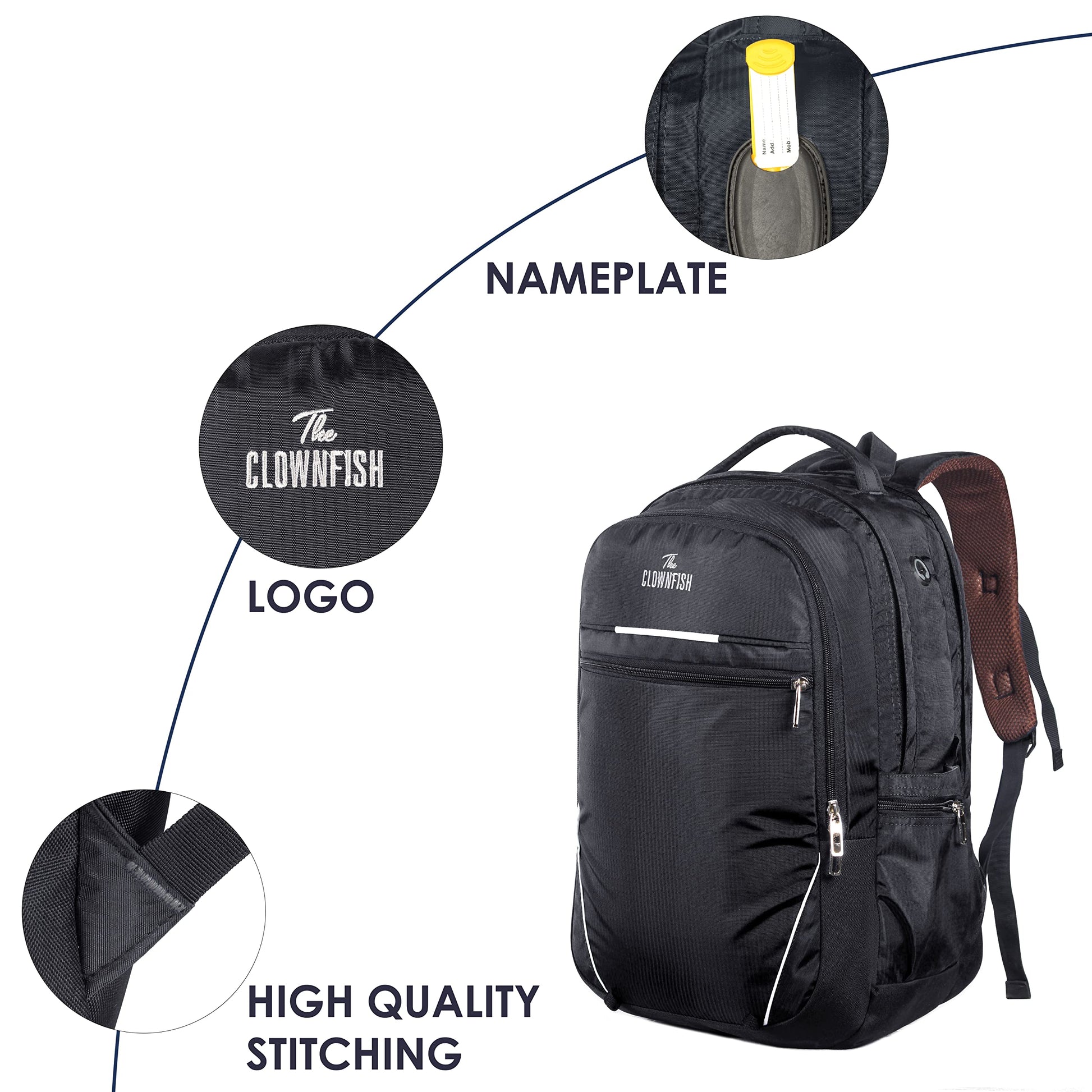 THE CLOWNFISH Emerson Polyester 26 Litres Unisex Travel Laptop Backpack for 14 inch Laptop (Black)