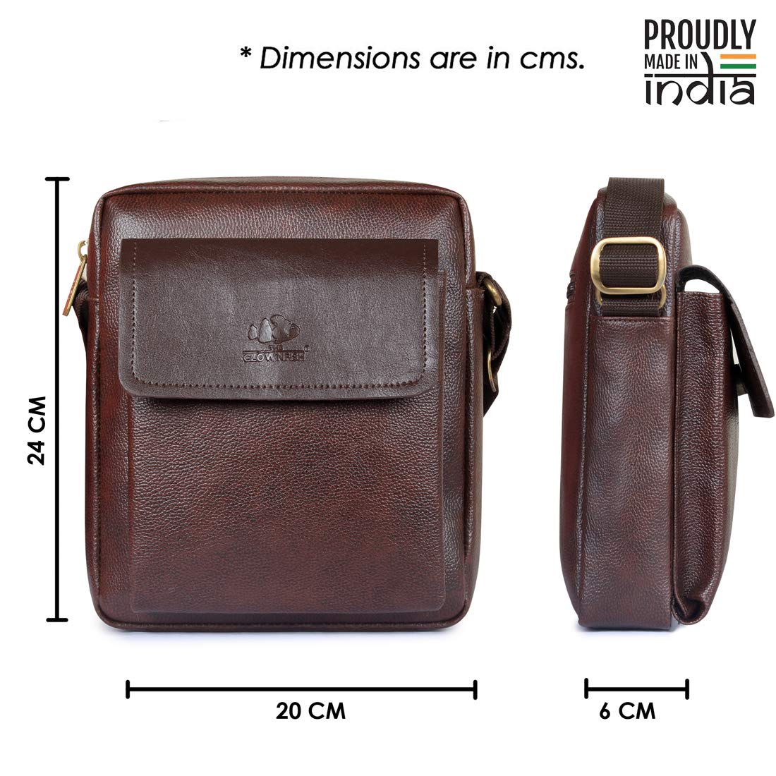 THE CLOWNFISH Empress Vegan Leather Unisex Office Sling Bag (Dark Brown)