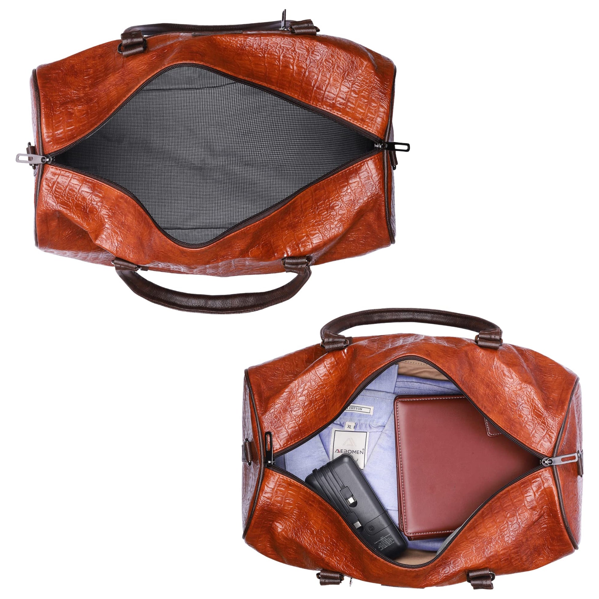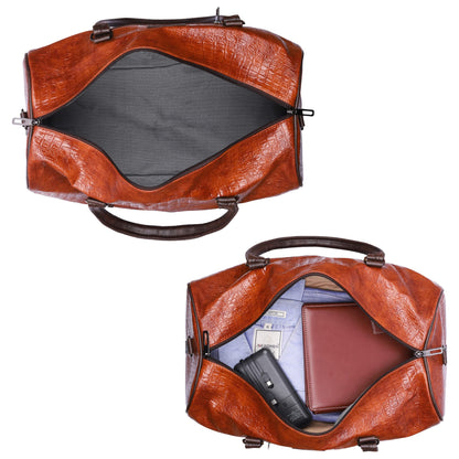 The Expedition Series 29 litres Faux Leather Crocodile Finish Unisex Travel Duffle Bag Weekender Bag (Tan)