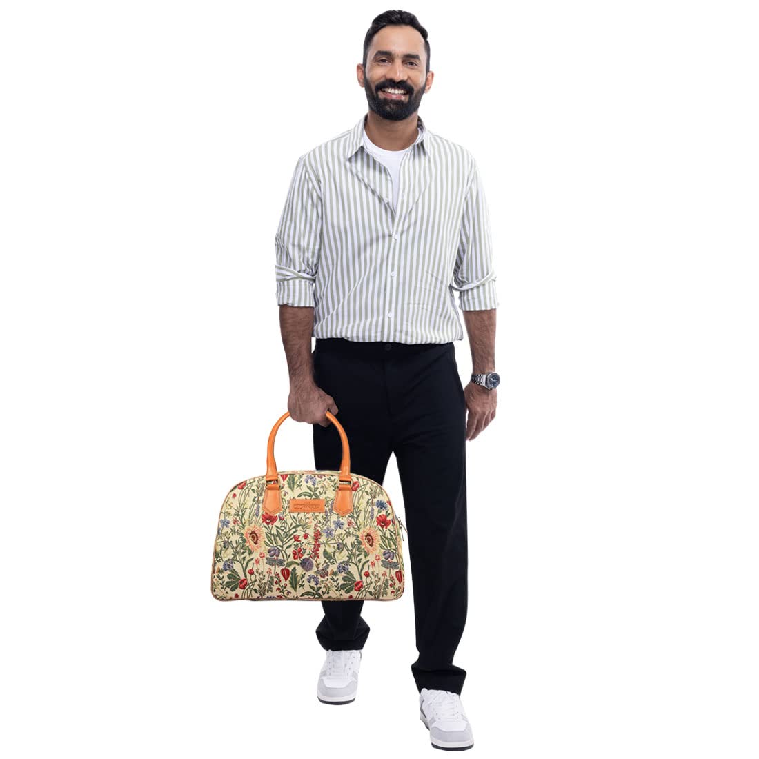 The Flora Tapestry Fabric 27 L Women's Duffle Travel Cabin Luggage Bag (Flax)