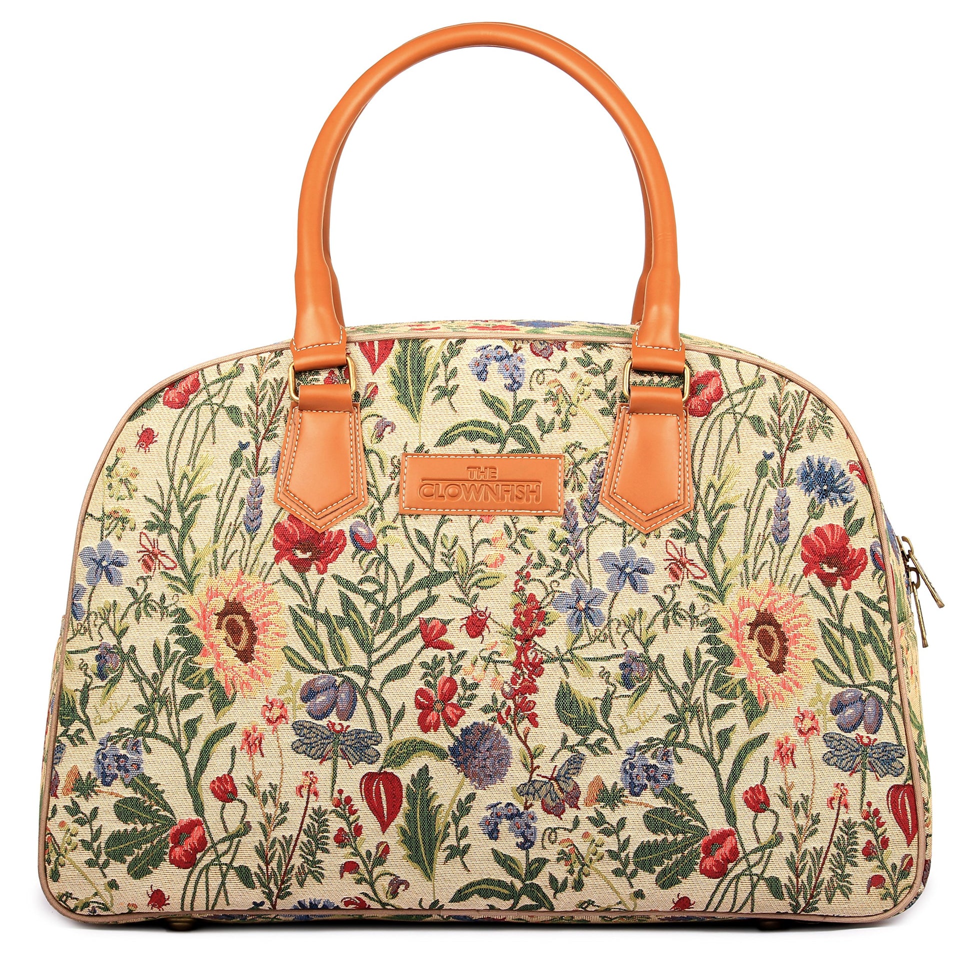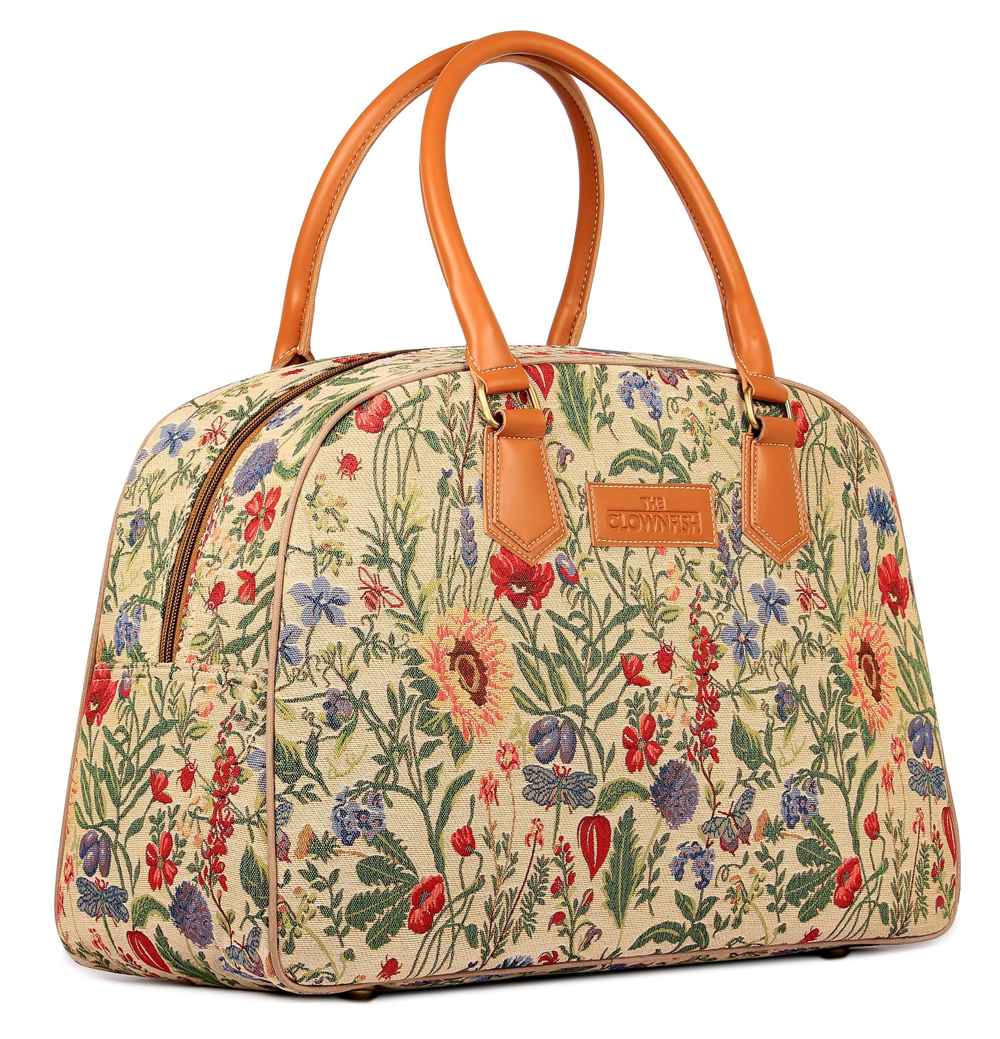 The Clownfish Flora Tapestry Fabric 27 L Women's Duffle Travel Cabin Luggage Bag (Flax)