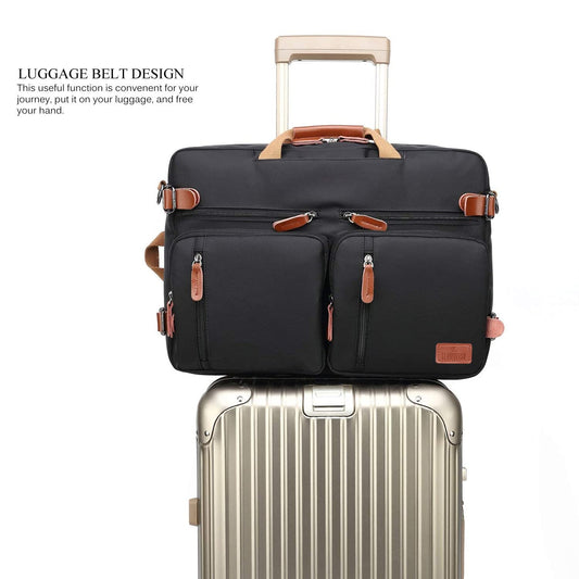 THE CLOWNFISH Unisex-Adult Convertible Laptop Briefcase Backpack With Genuine Leather Logo, Pullers And Handle (15.6 Inch, Black)