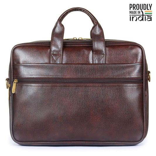 THE CLOWNFISH Unisex-Adult Faux Leather 15.6 Inch Laptop Messenger Bag Briefcase (Dark Brown)