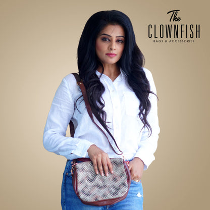 Introducing the Garnet Series Printed Handicraft Fabric & Tapestry Crossbody Sling Bag from THE CLOWNFISH, a perfect blend of style, functionality, and premium craftsmanship designed for the modern woman.