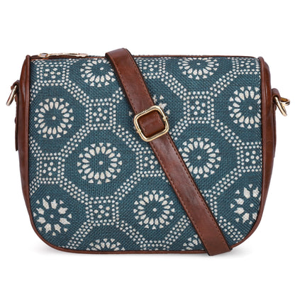 The Garnet Series Printed Handicraft Fabric & Tapestry Crossbody Sling Bag for Women Ladies Single Shoulder Bag Shoulder Belt (Light Blue)