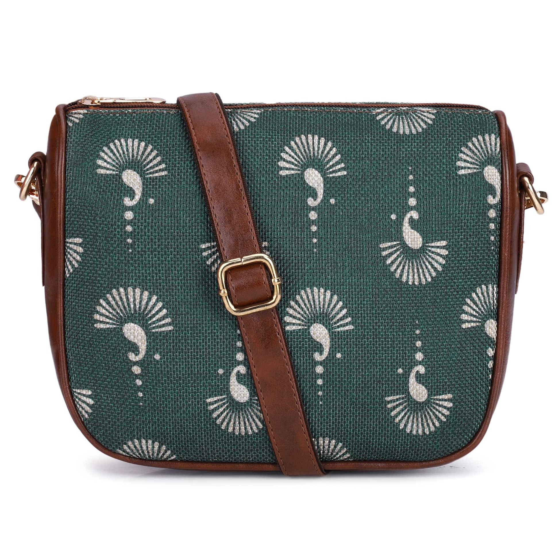 THE CLOWNFISH Garnet Series Printed Handicraft Fabric & Tapestry Crossbody Sling Bag for Women Ladies Single Shoulder Bag Shoulder Belt (Light Green)