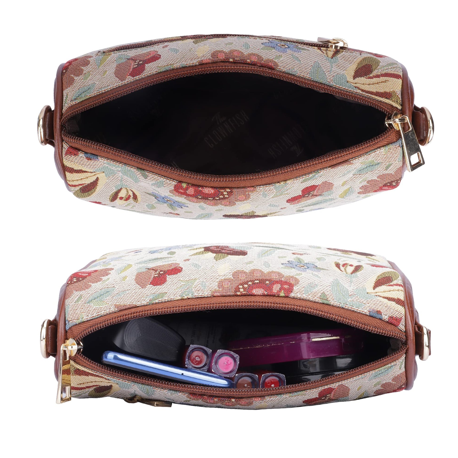 Discover the perfect blend of functionality and fashion with THE CLOWNFISH Garnet Series Tapestry Fabric Crossbody Sling Bag. Designed for the modern woman, this exquisite bag is not just an accessory, but a statement piece that complements your lifestyle.