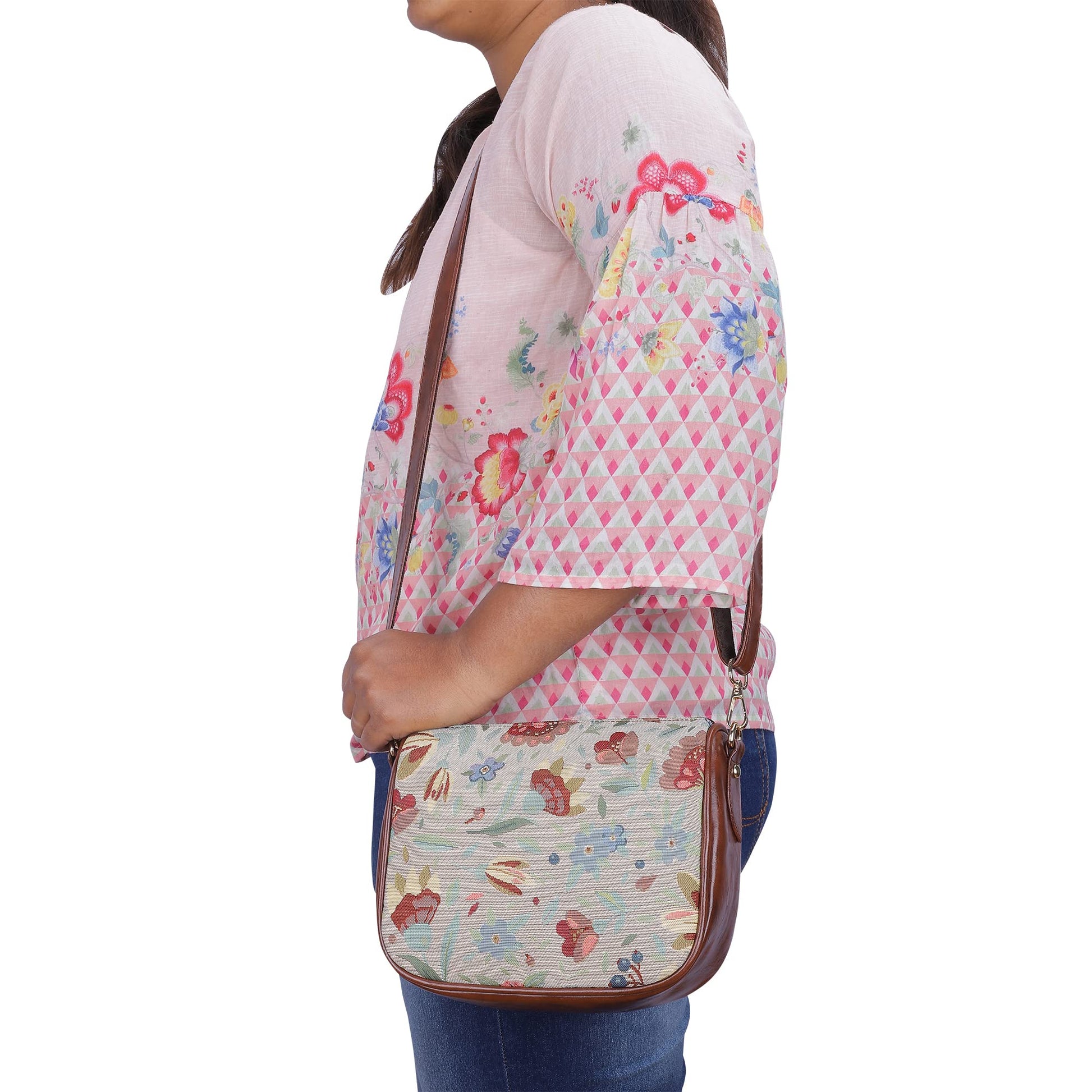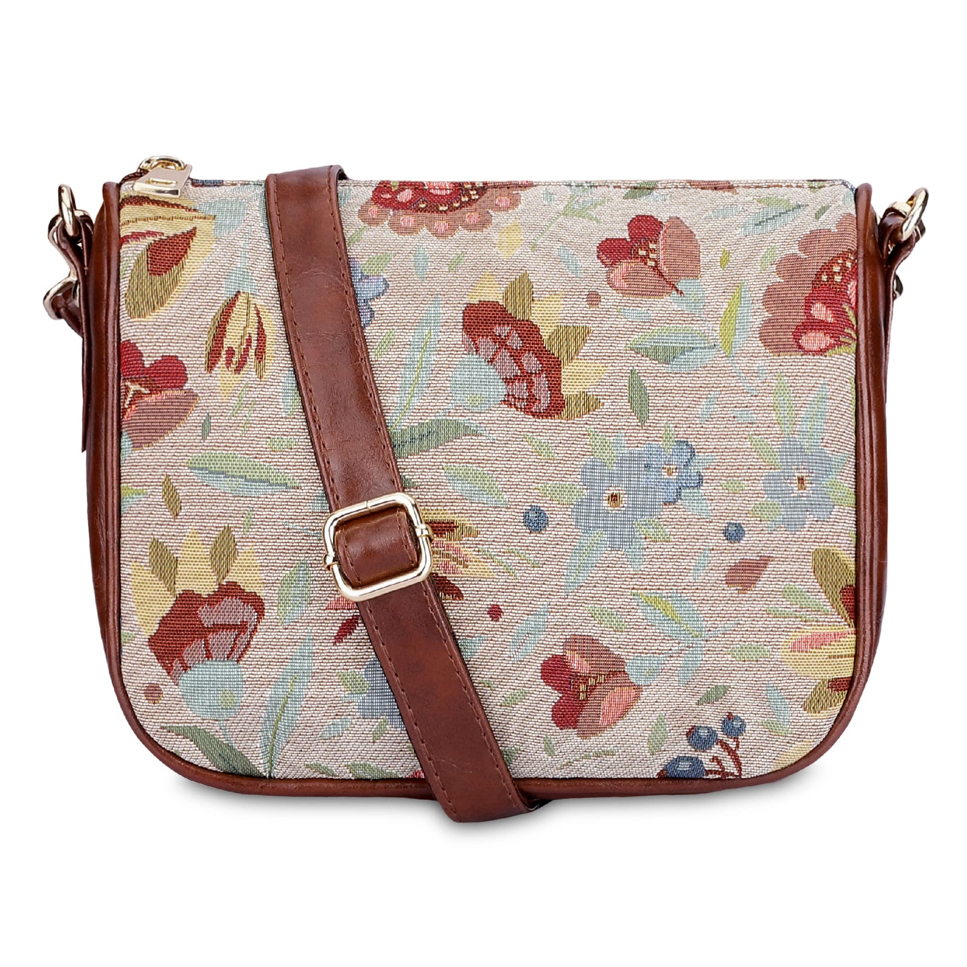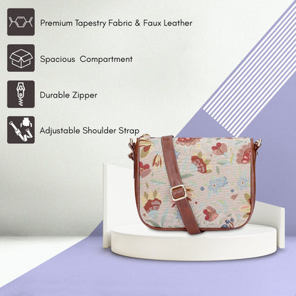 THE CLOWNFISH Garnet Series Tapestry Fabric Crossbody Sling Bag for Women Ladies Single Shoulder Bag Shoulder Belt (Sky Blue-Floral)