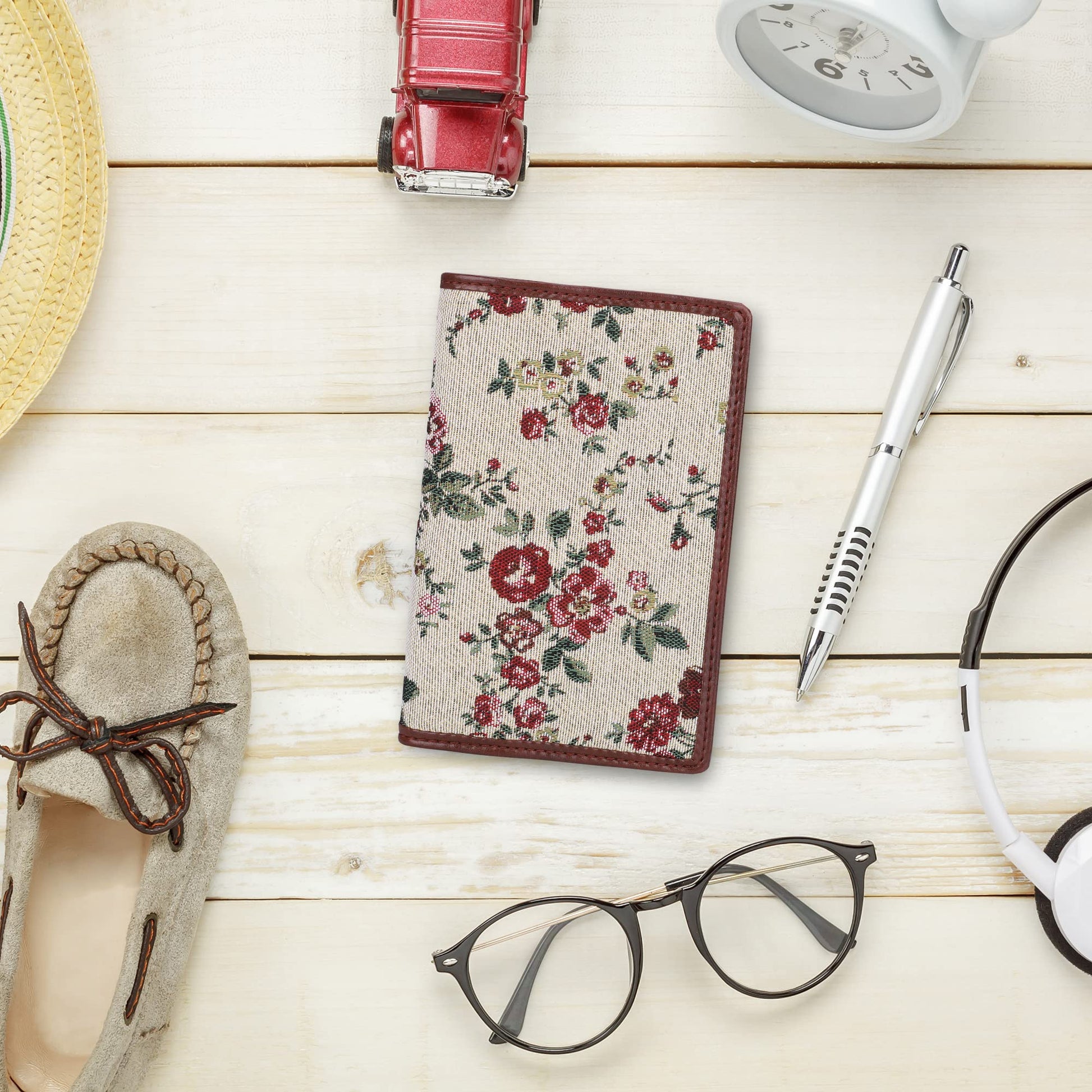 THE CLOWNFISH Glamour Fold Series Tapestry Fabric & Faux Leather Unisex Passport Wallet Travel Document Organizer (White-Floral)