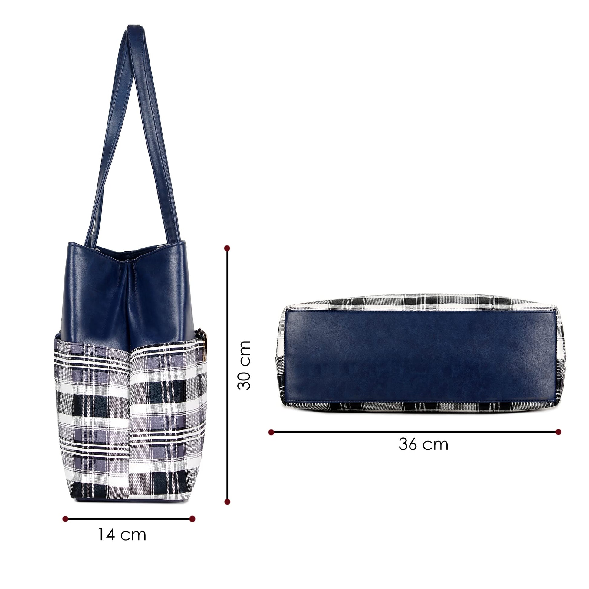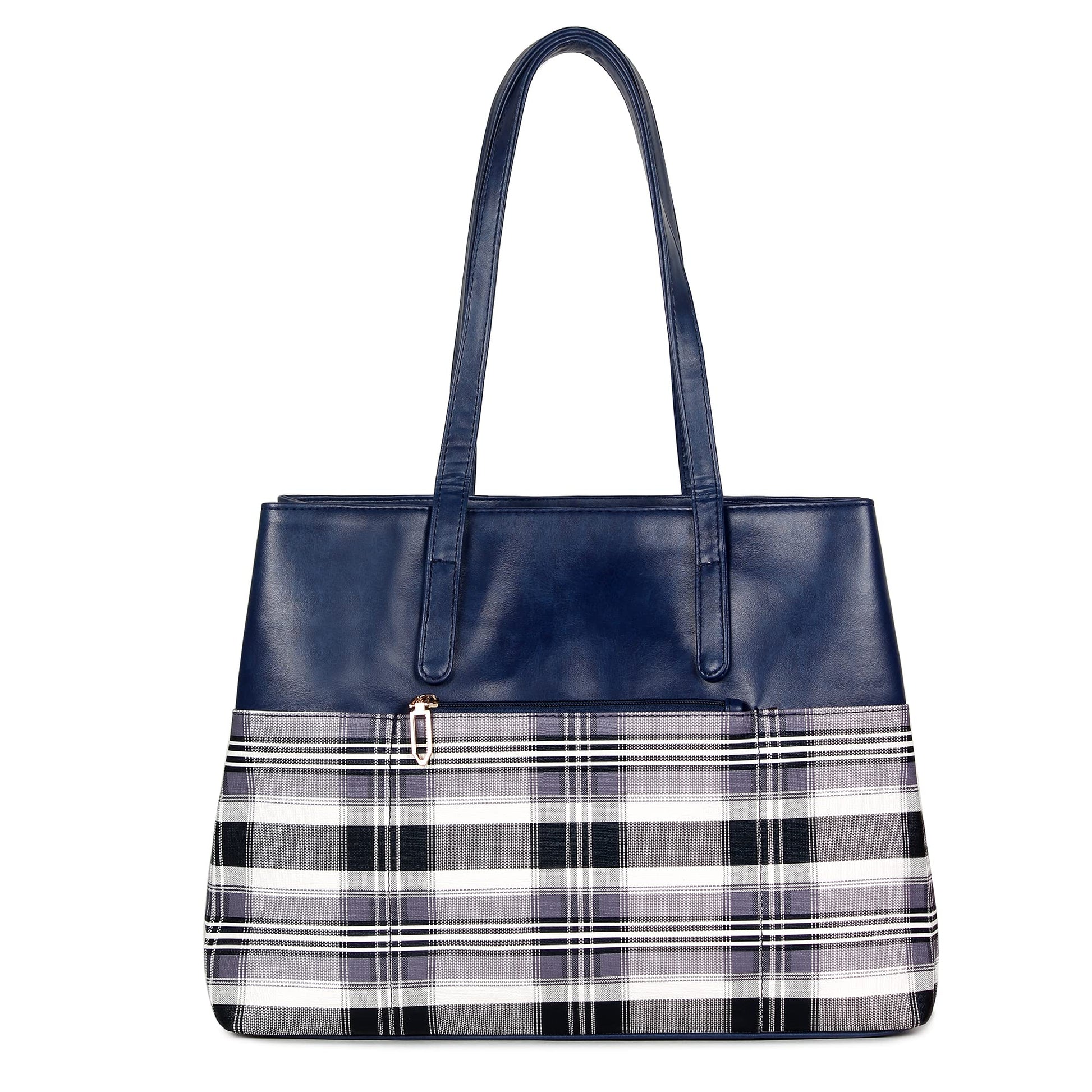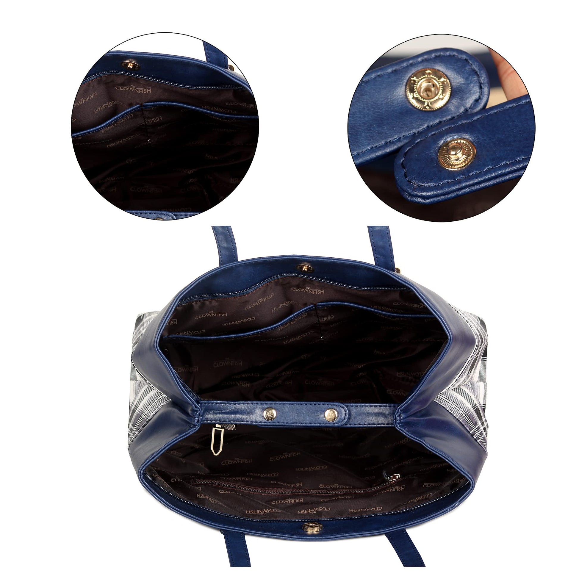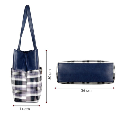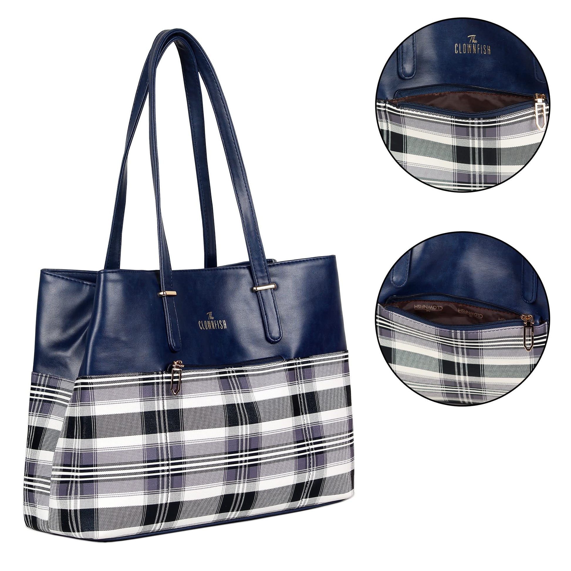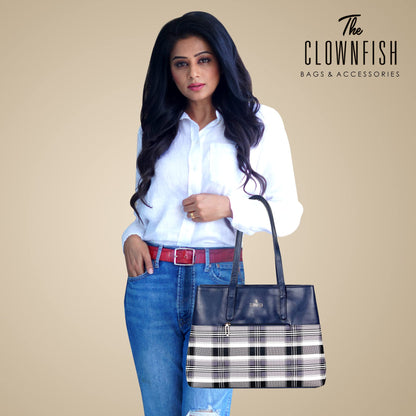 THE CLOWNFISH Gloria Handbag for Women Office Bag Ladies Shoulder Bag Tote For Women College Girls (Checks Design- Navy Blue)