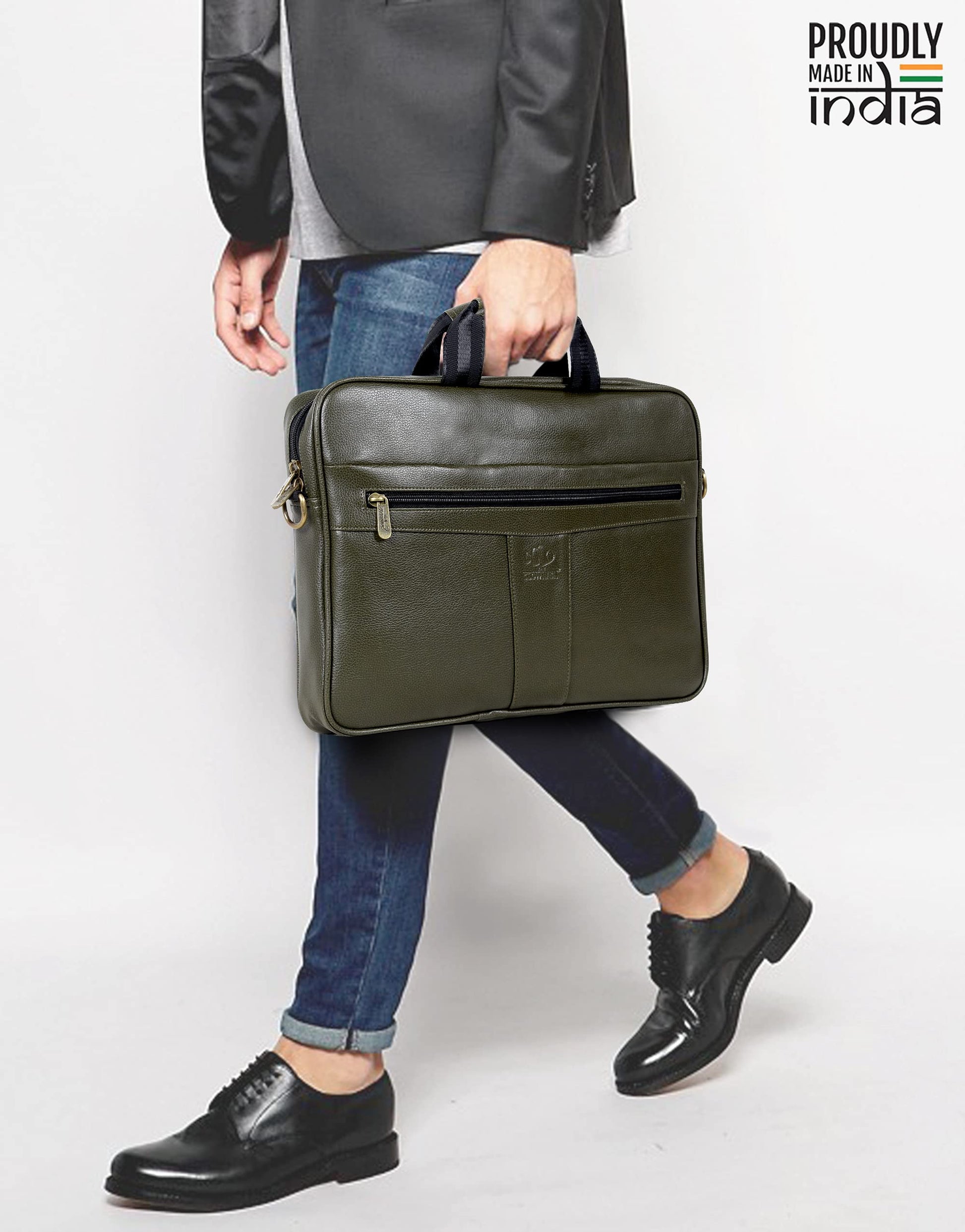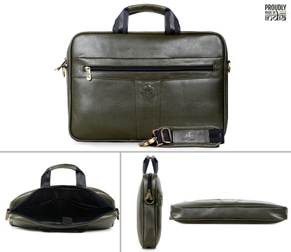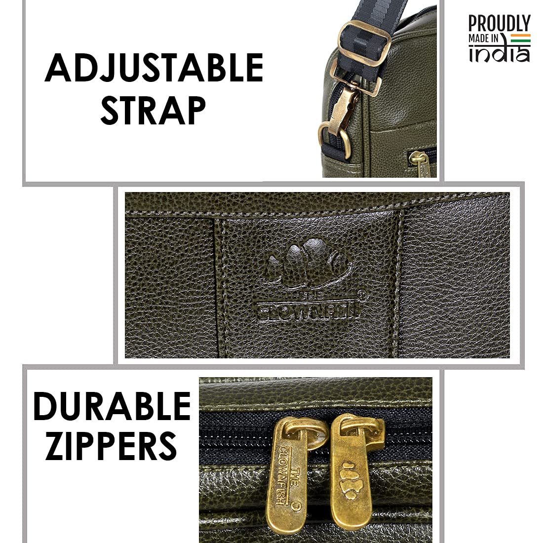 THE CLOWNFISH Icon Faux Leather 14 inch Laptop Messenger Bag Briefcase (Green)