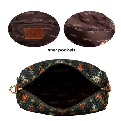 The Clownfish Isla Printed Handicraft Fabric Crossbody Sling Bag for Women Casual Party Bag Purse with Adjustable Shoulder Strap and Printed Design for Ladies College Girls (Green)