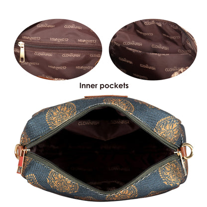 Introducing THE CLOWNFISH Isla Printed Handicraft Fabric Crossbody Sling Bag, a perfect blend of functionality and fashion designed for the modern woman. Crafted with care and attention to detail, this bag is ideal for casual outings, parties, or everyday use.