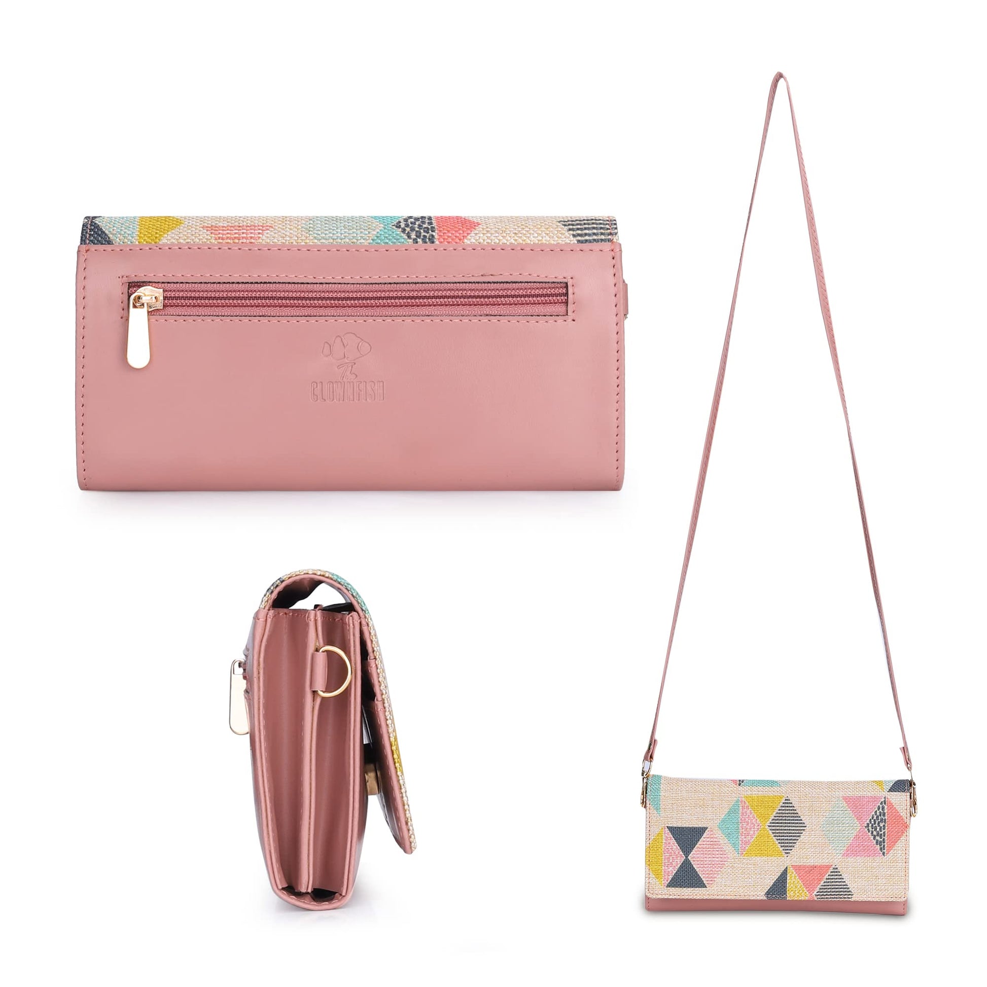 THE CLOWNFISH Jolene Printed Handicraft Wallet - Vegan Leather, Multiple Card Slots | Sling Bag Included | Multicolour