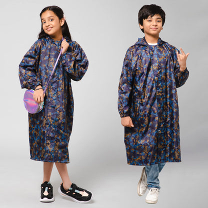 THE CLOWNFISH Men Splash Squad Series Kids Raincoat Waterproof Polyester Double Coating Reversible Longcoat With Hood And Reflector Logo At Back. Printed Plastic Pouch. Kid Age-5-6 Years (Blue)
