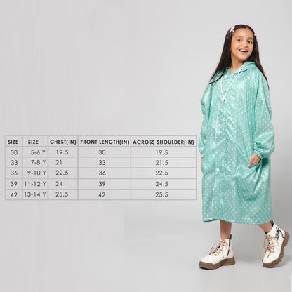 THE CLOWNFISH Drizzle Dot Series Kids Raincoat Waterproof Polyester Double Coating Reversible Longcoat with Hood and Reflector Logo at Back. Printed Plastic Pouch. Kid Age-11-12 years (Seafoam Green)