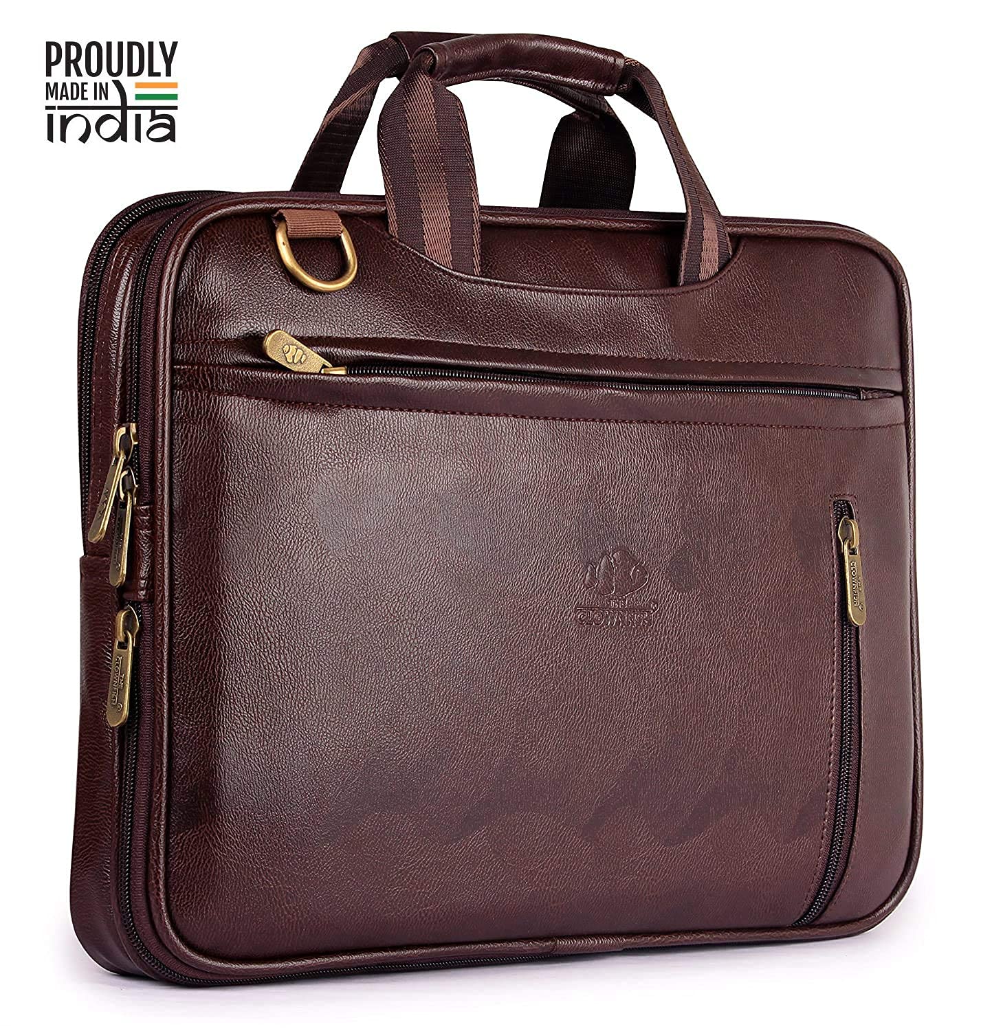 Elegant Laptop Bag - Water Resistant, Synthetic Leather | Adjustable Strap | Fits up to 15.6 inch | Brown
