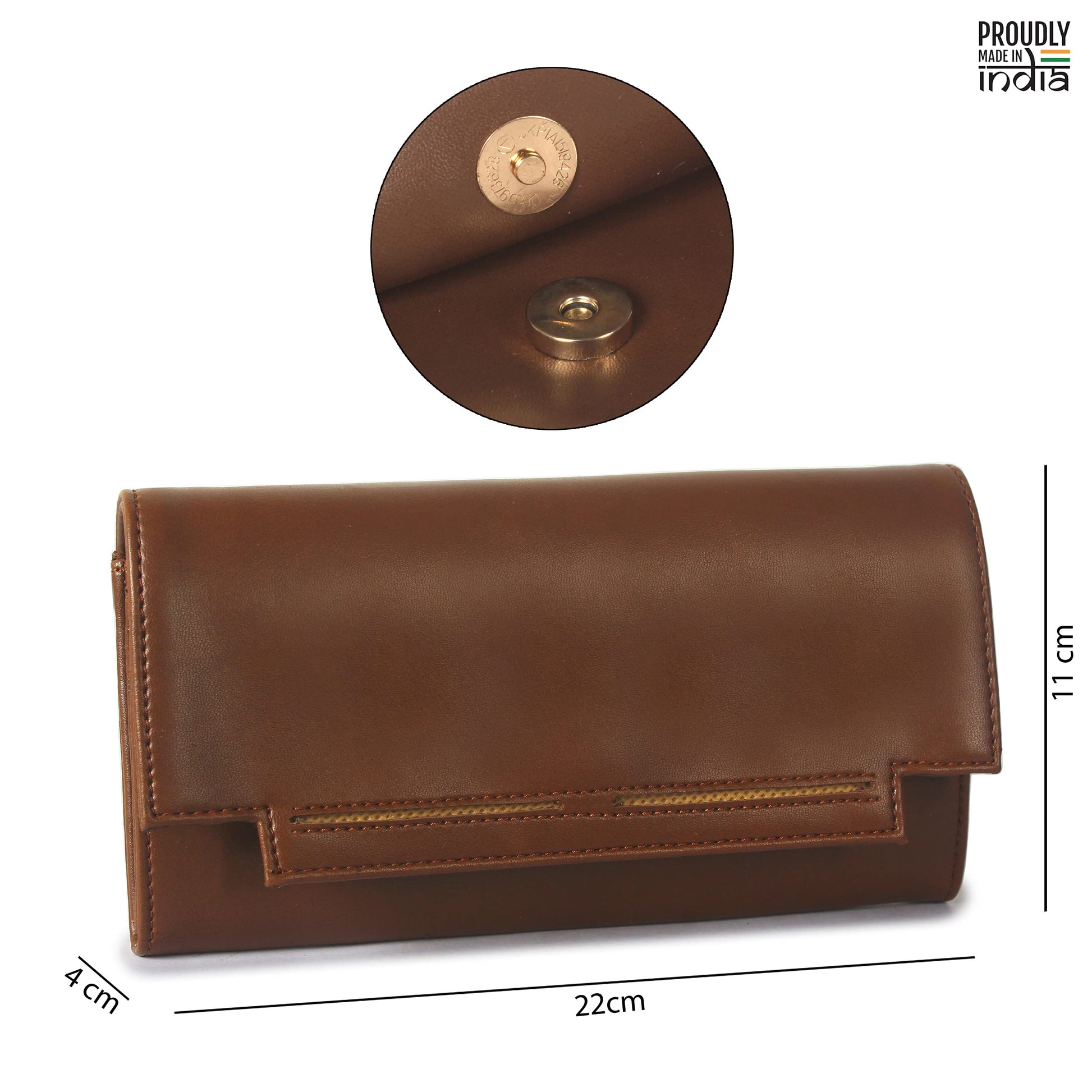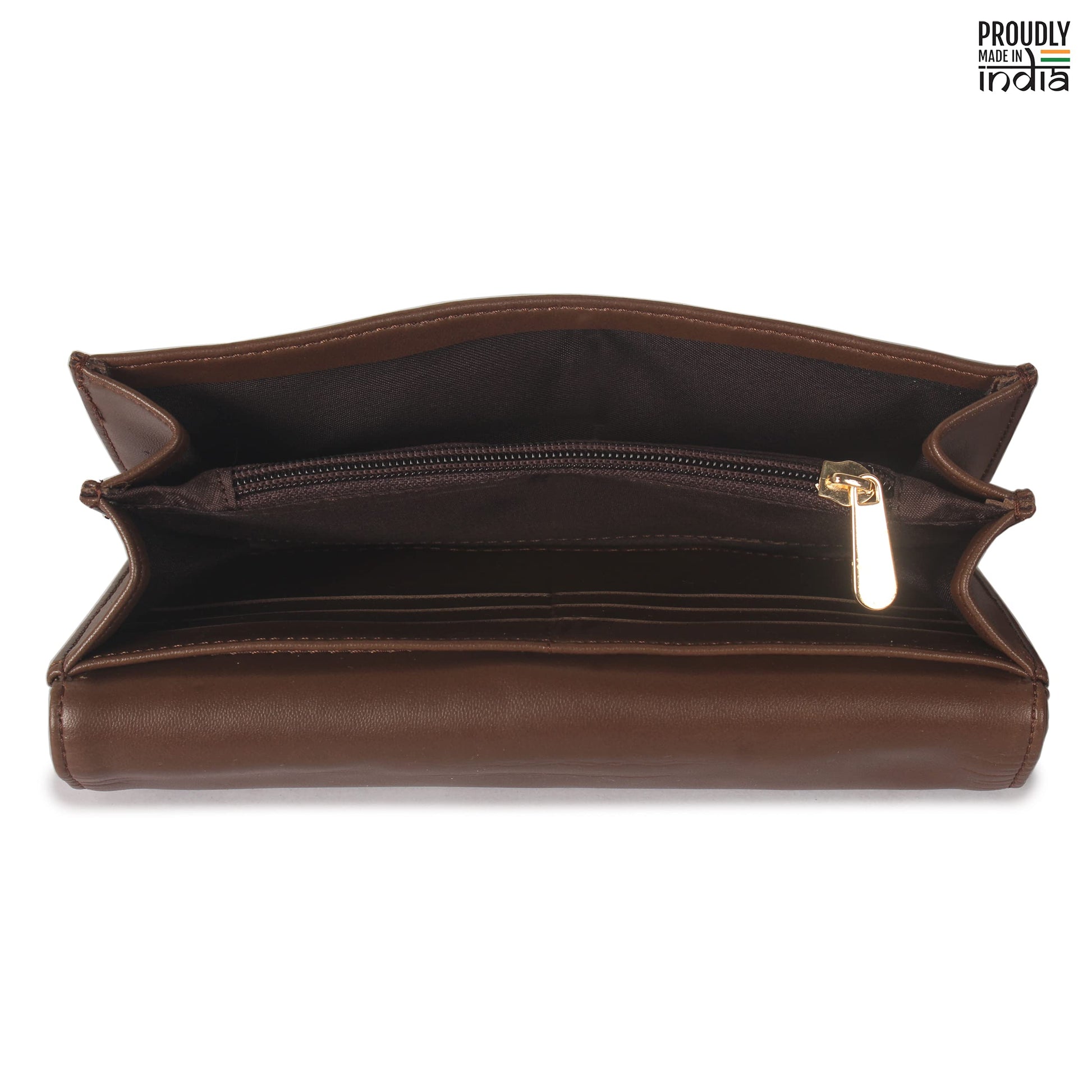 THE CLOWNFISH Laura Collection Womens Wallet Clutch Ladies Purse with Multiple Card Slots (Brown)