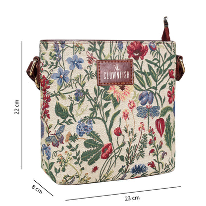 - High-Quality Faux Leather: This sling bag boasts a combination of premium faux leather and tapestry material, ensuring a stylish yet durable exterior.