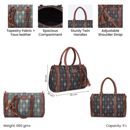 THE CLOWNFISH Lorna Printed Handicraft Fabric Handbag for Women Office Bag Ladies Shoulder Bag Tote For Women College Girls (Green)