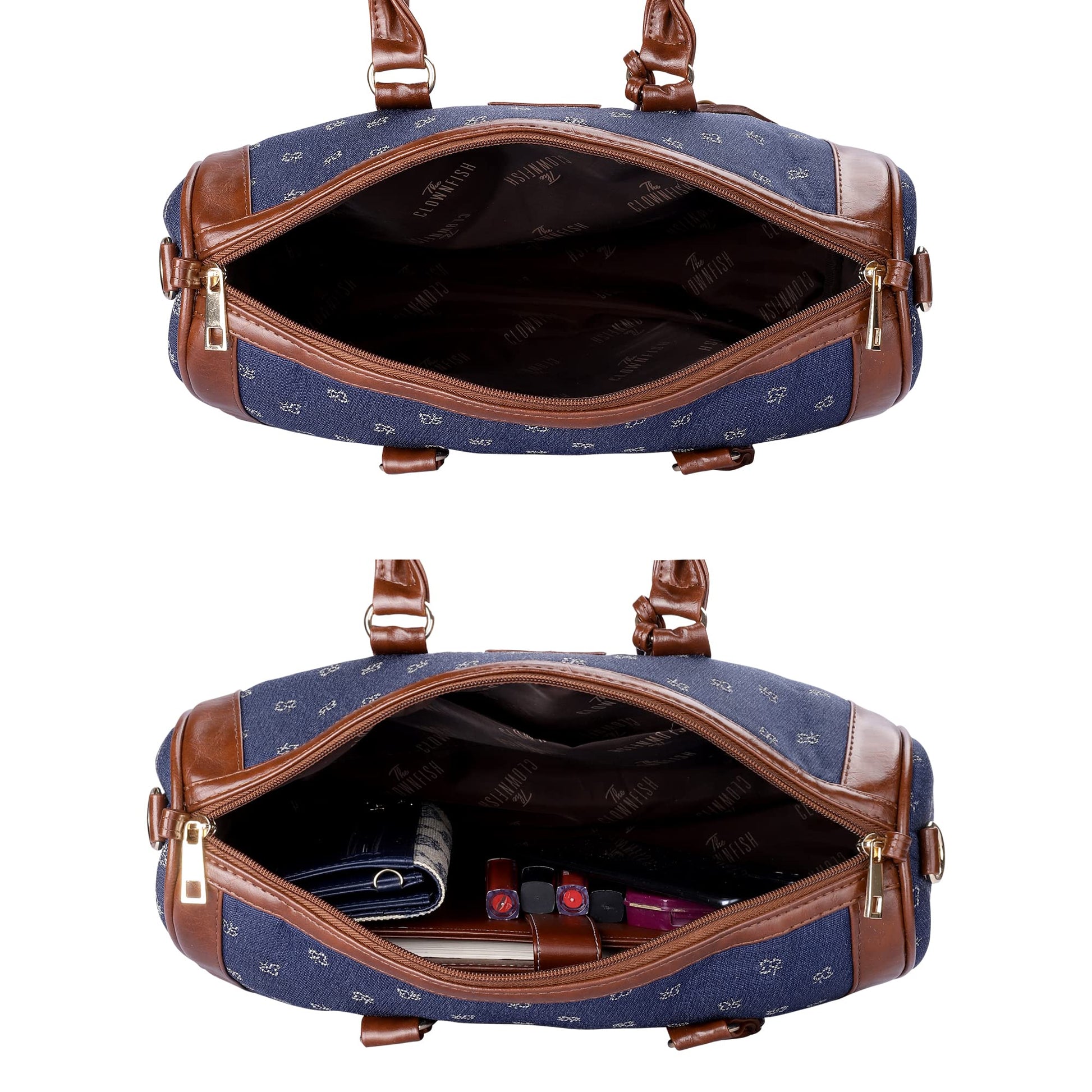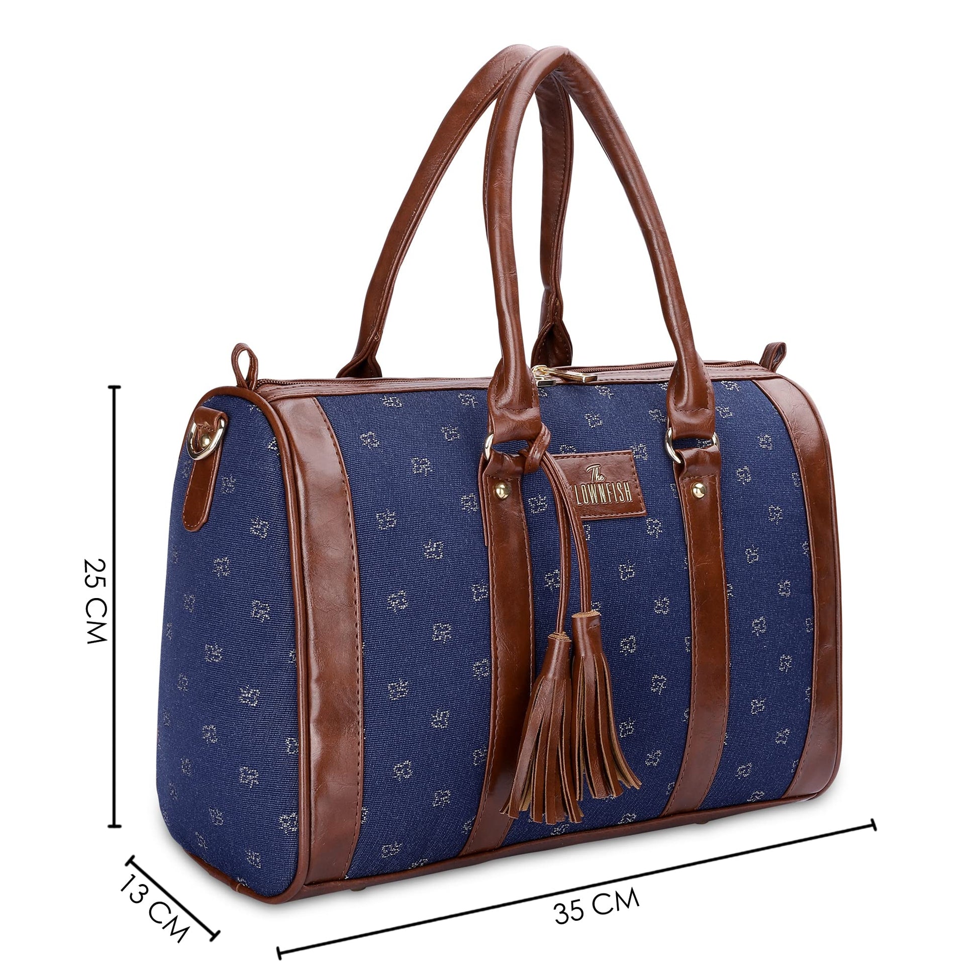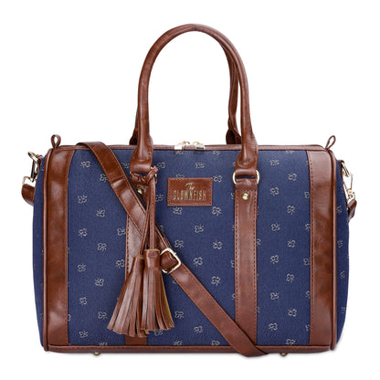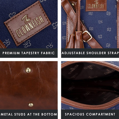 THE CLOWNFISH Lorna Tapestry Fabric & Faux Leather Handbag Sling Bag for Women Office Bag Ladies Shoulder Bag Tote For Women College Girls (Blue-Spade)